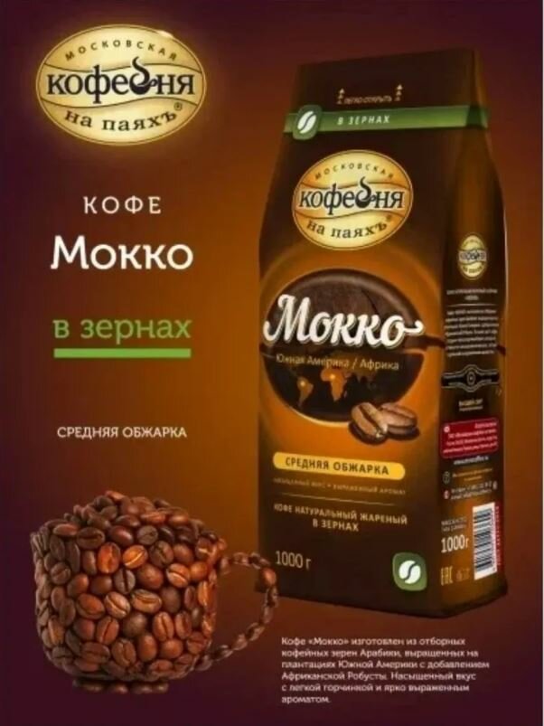 Кофе в зернах Московская кофейня на паяхъ Мокко 250 г
