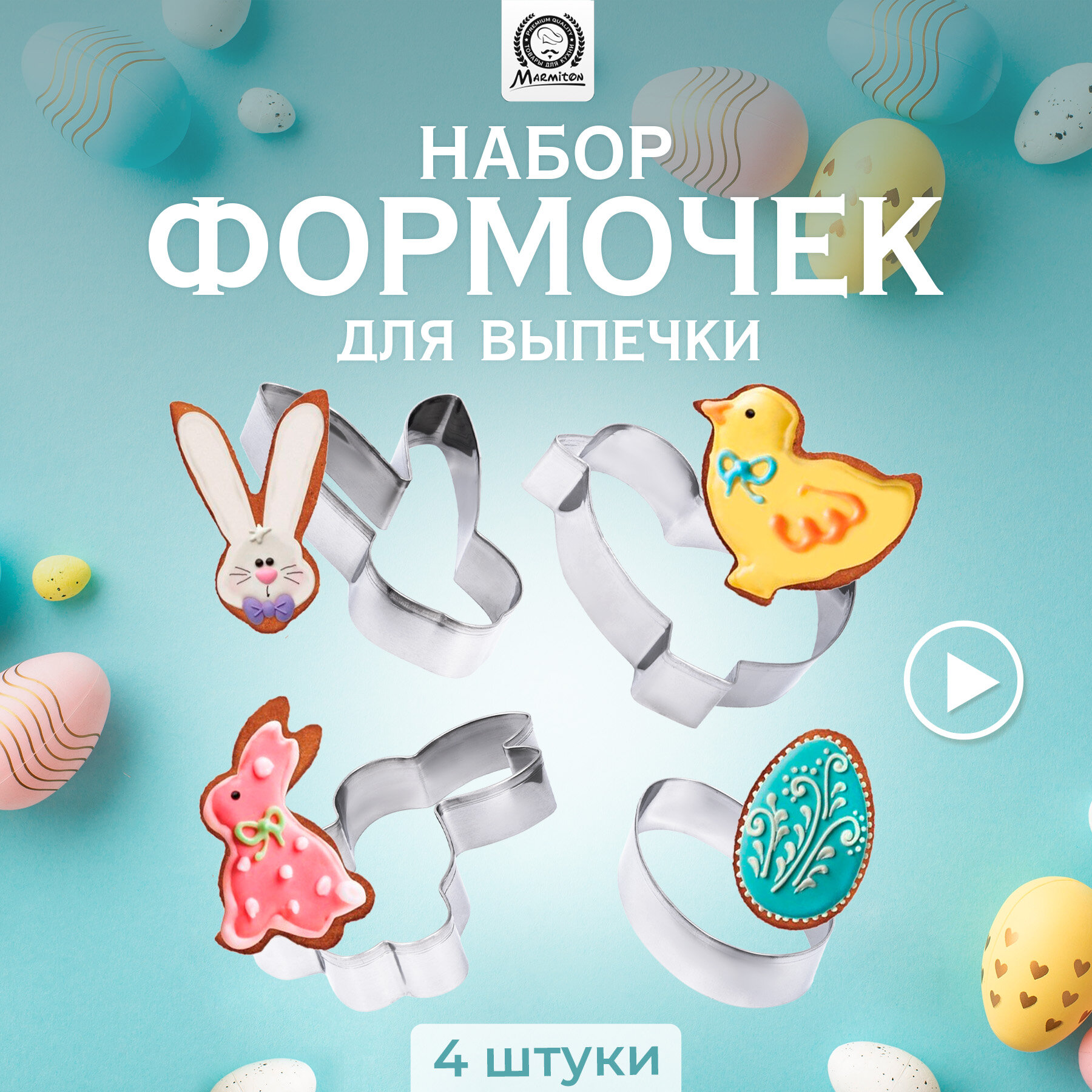 Формы для печенья Marmiton Пасха нержавеющая сталь 6 - 10 см 4 шт