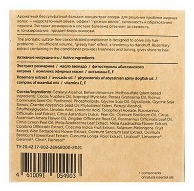 Экстаркт Розмарина придает волосам блеск, упругость, наполняет свежестью и чистотой.Масло Авокадо питает волосы, придает объем и ухоженный вид.