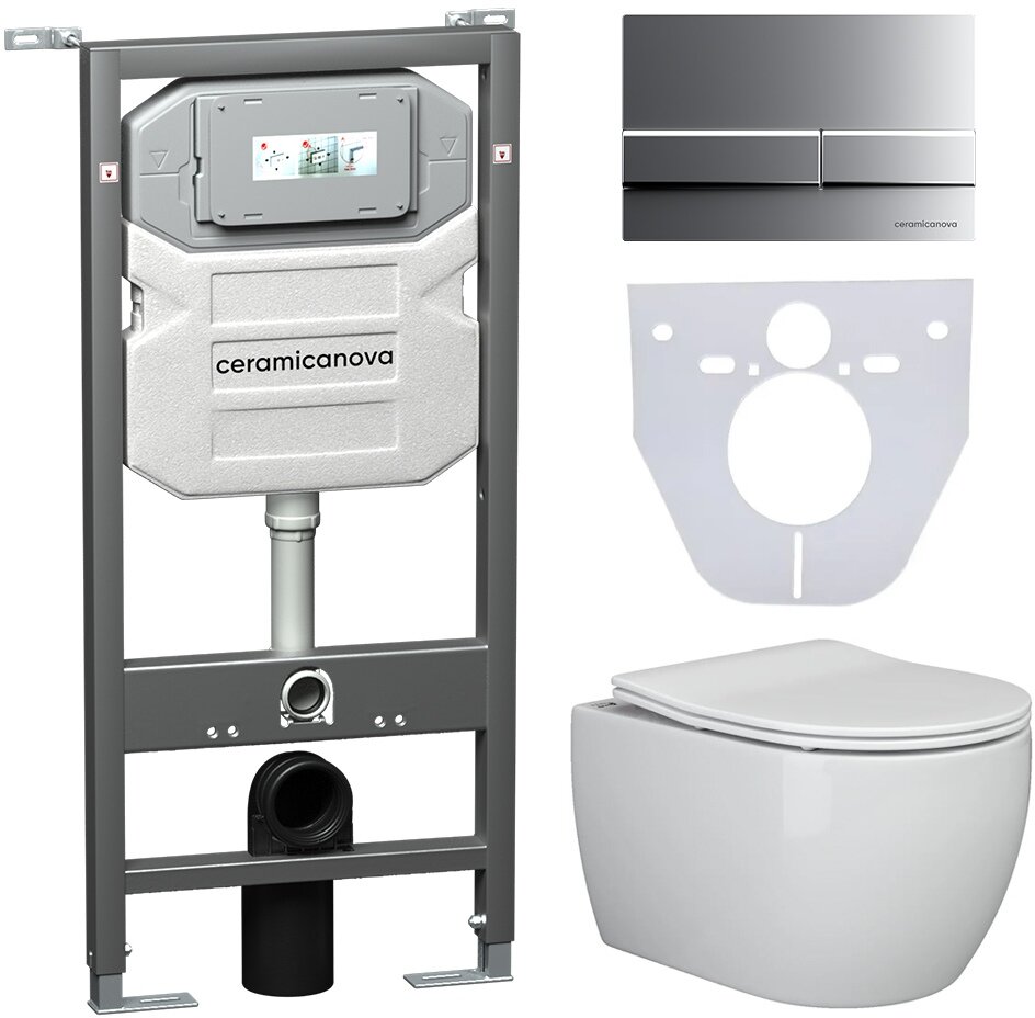 Сервис сравнения цен СкидкаГИД предлагает сравнить цены на товар «Комплект унитаза с инсталляцией Ceramica Nova Play CN3001_1002M_1000 с сиденьем Микролифт и клавишей смыва Хром матовый»
