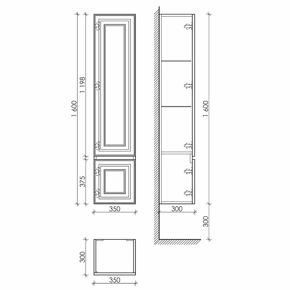 - Габариты (ШхВхГ): 350х1600х300 мм.