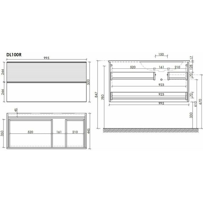 - Габариты корпуса тумбы (ШхВхГ): 995х500х445 мм.
