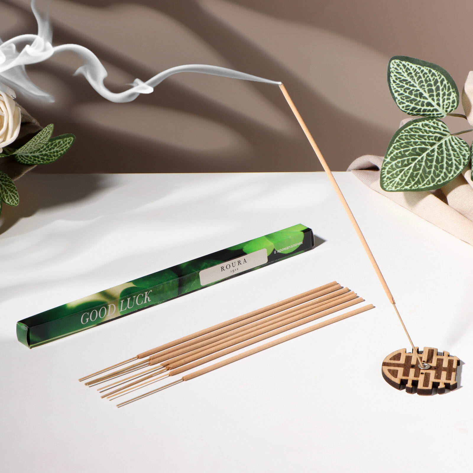 Набор палочек ароматических ROURA Удачи -это бамбуковые палочки , пропитанные ароматическими маслами, которые наполняют пространство ароматным дымом при сжигании. Используются для ароматизации помещения, медитации, ароматерапии, для создания успокаивающей атмосферы,при приёме ванн, за чашкой чая на диване или просто перед сном. Произведены в Индии.
