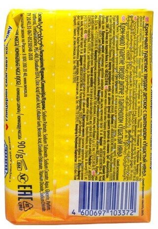 | Состав | sodium palmate, sodium tallowate, sodium cocoate, aqua, glycerin, parfum, panthenol, triethanolamine, peg-400, disodium edta, citric acid/tartaric acid, cellulose gum, benzoic acid, disodium etidronate, titanium dioxide, sodium chloride |