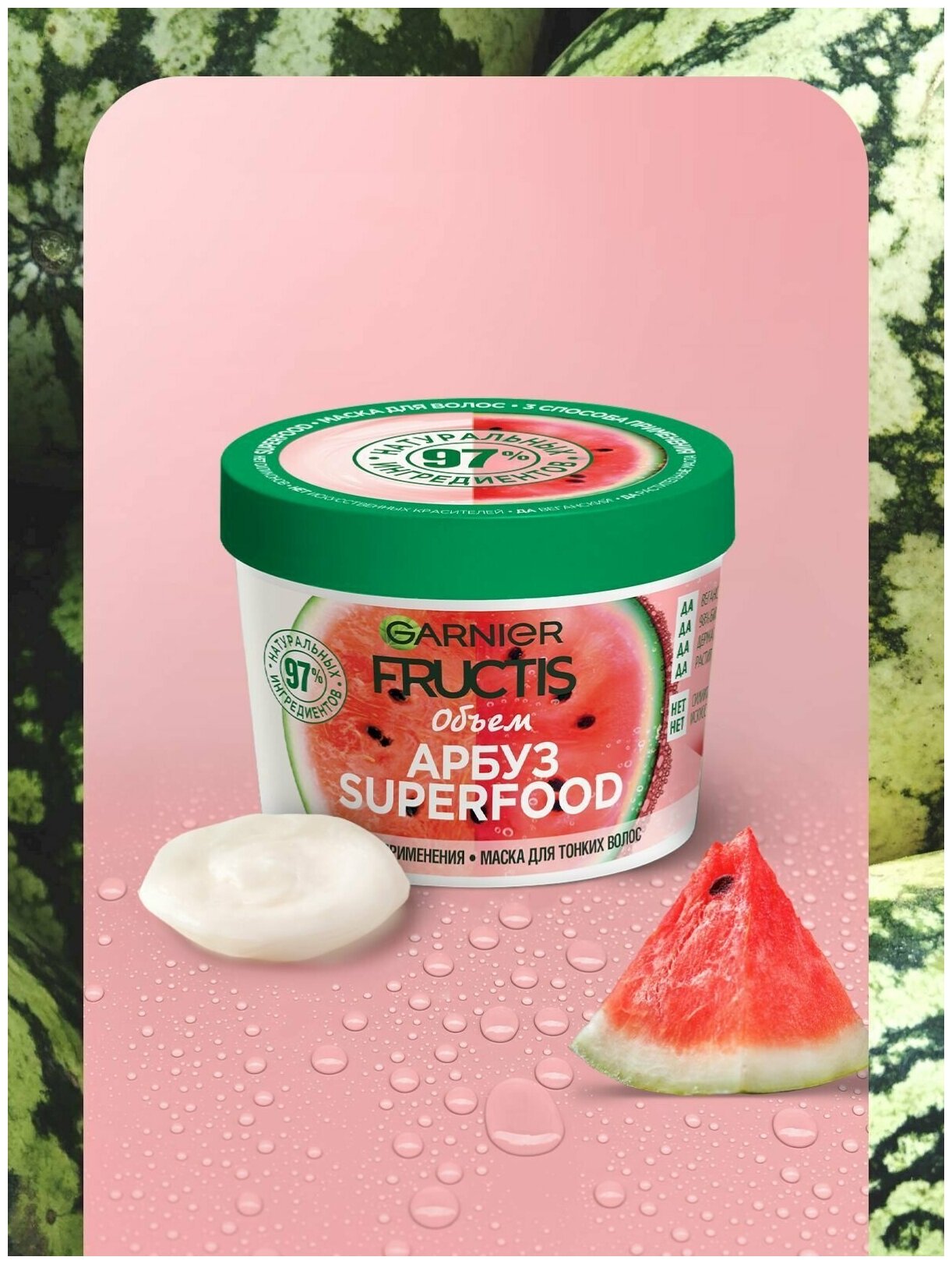 Маска для волос Garnier Fructis Superfood Арбуз объем для тонких волос 390 мл