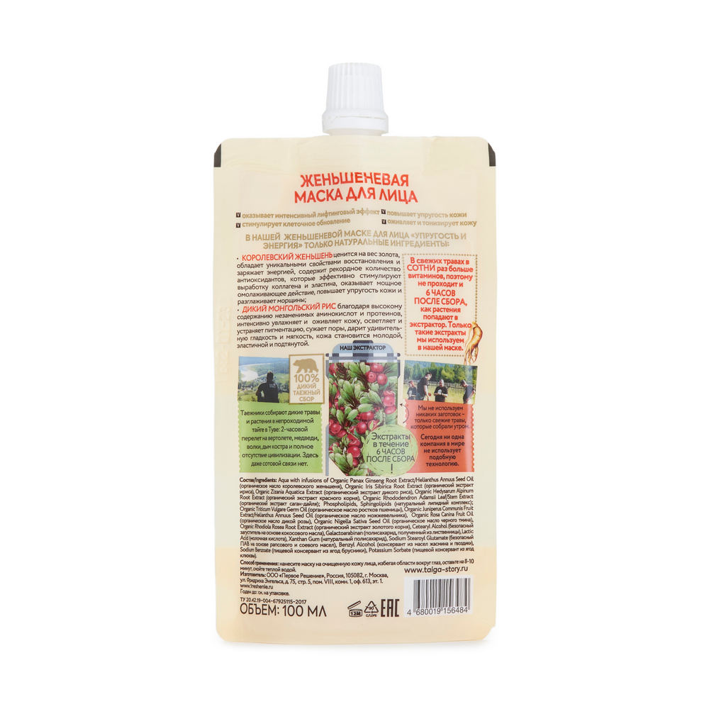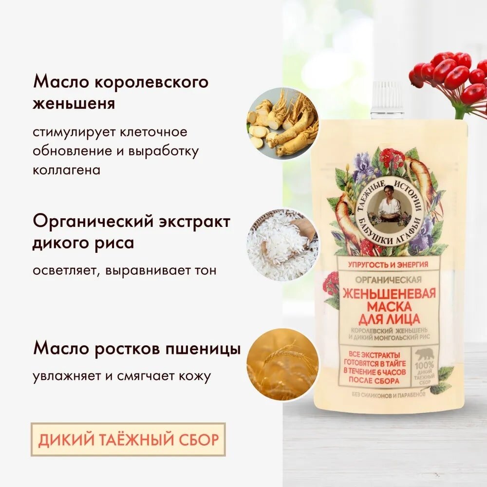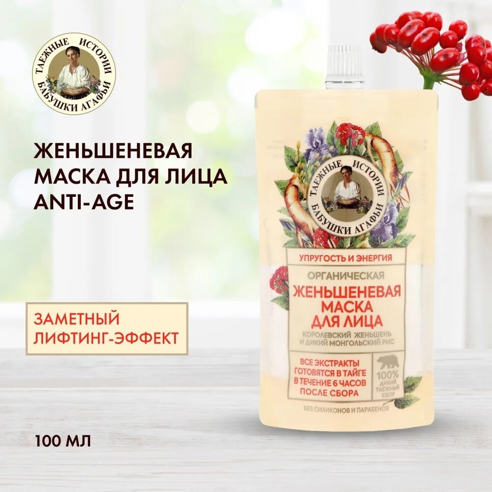 Маска для лица Рецепты Бабушки Агафьи Таежные истории Anti-Age женьшеневая 100 мл