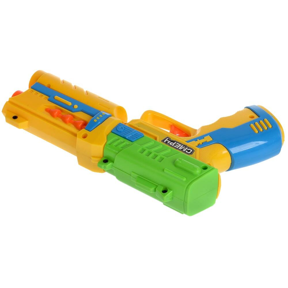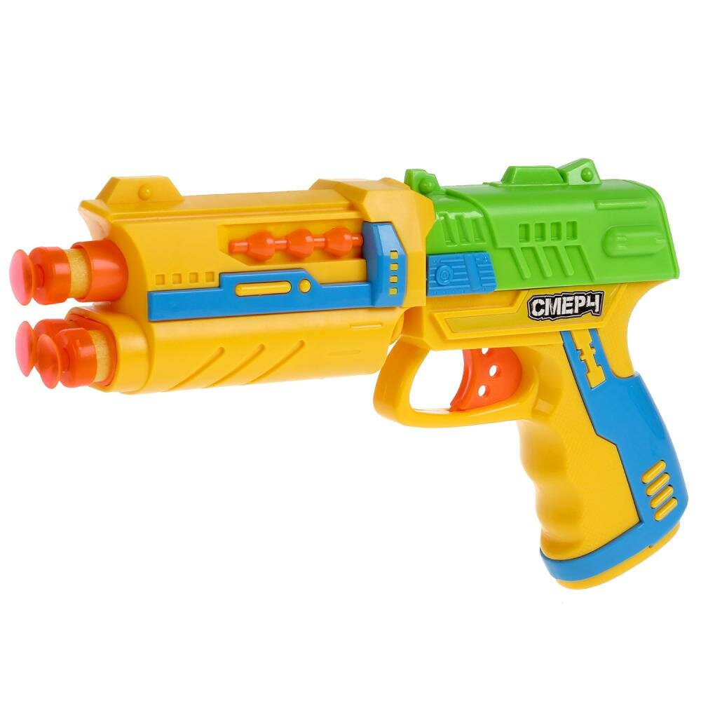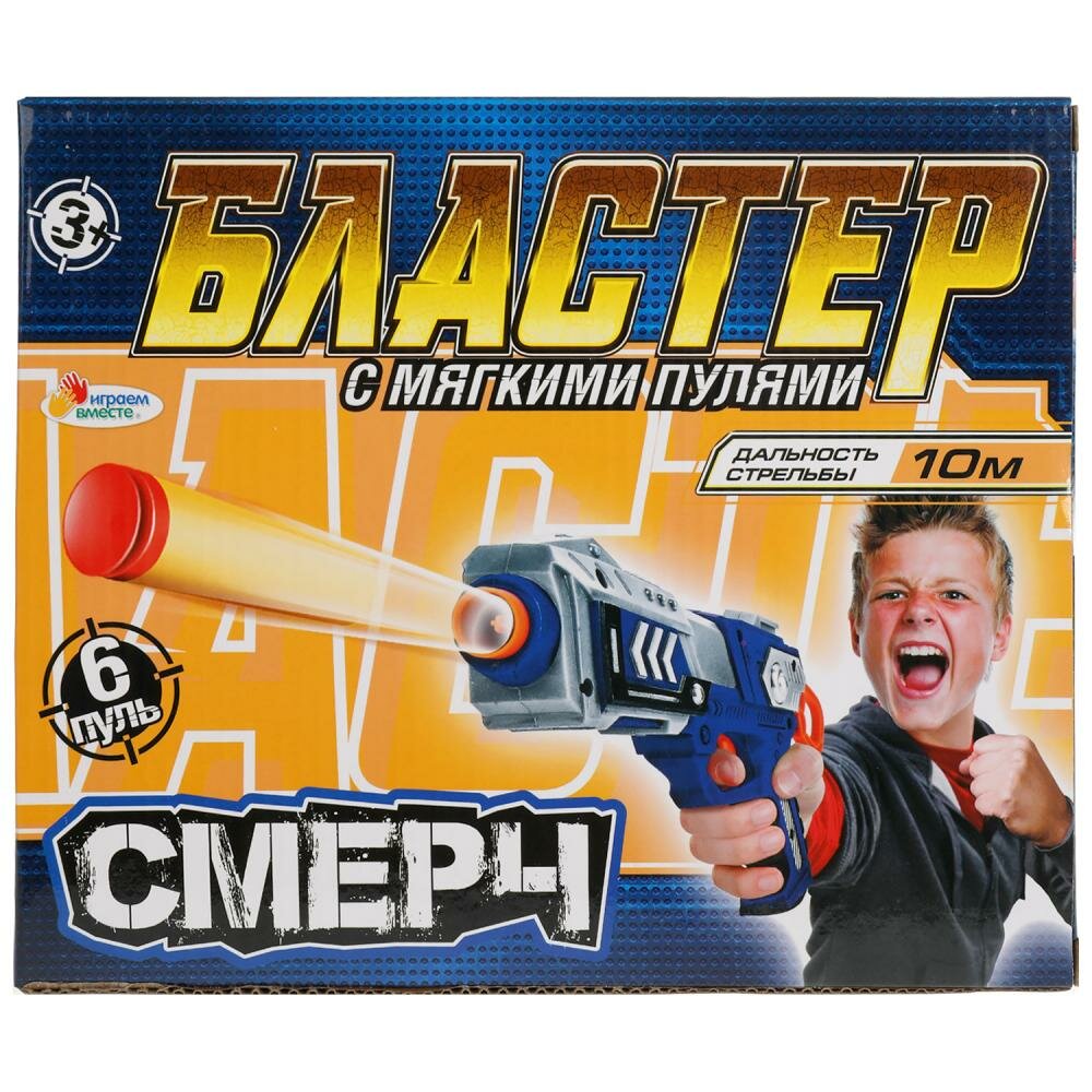 Бластер с мягкими пулями Смерч непременно понравится юному герою. С этим игровым оружием ваш ребенок будет придумывать увлекательные спецзадания, защищать мир и стоять на страже порядка. С таким бластером маленький герой станет самым метким стрелком. Набор подойдет для активных игр на воздухе и в помещении. Рекомендовано детям от 3-х лет.