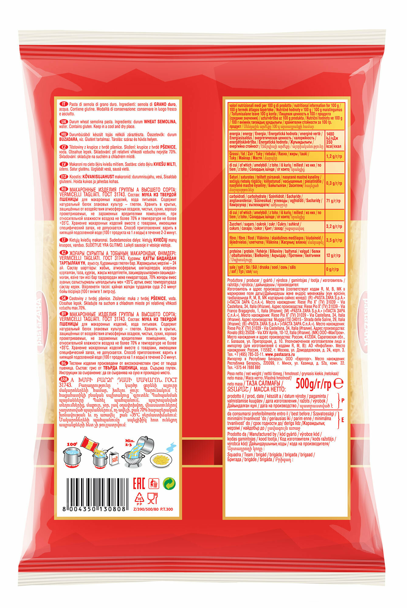 | Производитель | R, М, В - Паста Зара С.п.А. (Италия)<br/>MK - ООО "МакПром" (Россия)<br/>смотреть на упаковке |