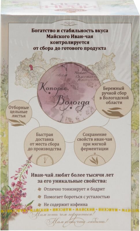 100% натуральный крупнолистовой Иван-чай. Классический Иван-чай имеет нежный травяной вкус с приятными медовыми нотами и нотами кураги и чернослива с небольшой, но приятной кислинкой. Не содержит кофеина, а значит, его можно пить в любое время суток, помогает снять усталость, оказывает успокаивающее и общеукрепляющее воздействие на весь организм. Иван-чай - это целая кладезь витаминов и микроэлементов! Почувствуйте пользу в каждой чашке!