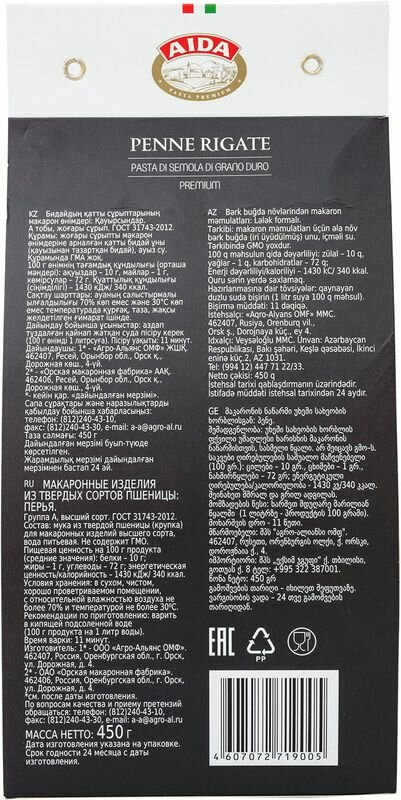 Сервис сравнения цен СкидкаГИД предлагает сравнить цены на товар «Перья Aida Penne Rigate 450г»