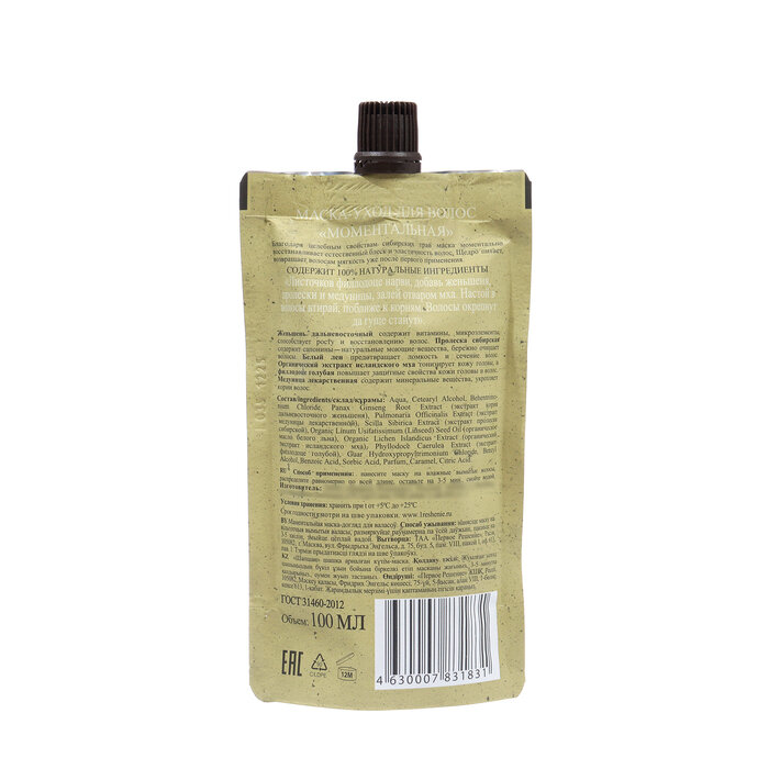 Благодаря целебным свойствам сибирских трав маска моментально восстанавливает естественный блеск и эластичность волос. Щедро, питает возвращает волосам мягкость уже после первого применения. Женьшень дальневосточный содержит витамины, микроэлементы, способствует росту и восстановлению волос. Пролеска сибирская содержит сапонины - натуральные моющие вещества, бережно очищает волосы. Белый лен предотвращает ломкость и сечение волос. Органический экстракт исландского мха тонизирует кожу головы, а филлодоце голубая повышает защитные свойства кожи головы и волос. Медуница лекарственная содержит минеральные вещества, укрепляет корни волос.