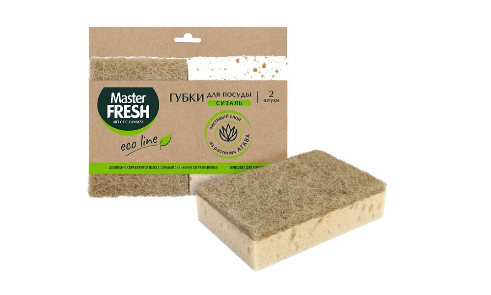 100% экологичный чистящий слой губок Master FRESH изготовлен из натурального материала сизаль, получаемый из листьев растения агава.