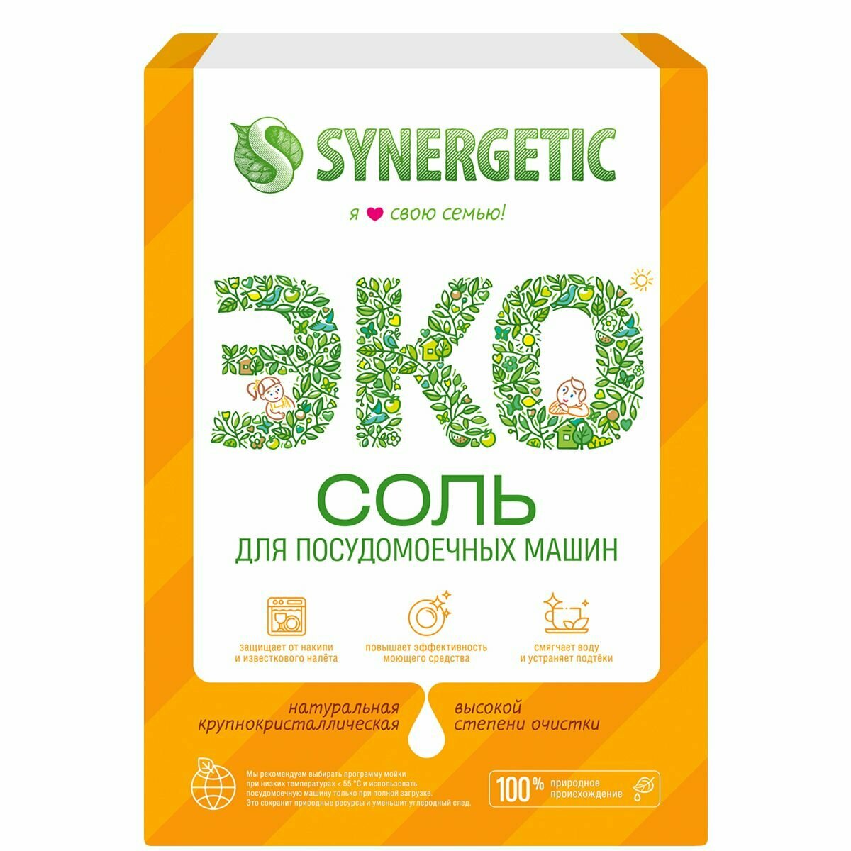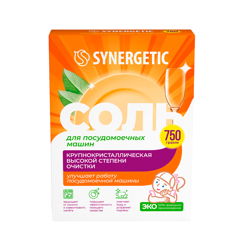 Соль высокой степени очистки для посудомоечной машины SYNERGETIC улучшает работу посудомоечной машины, смягчает воду и защищает от накипи её элементы, предотвращает образование известкового налета и обеспечивает максимальную эффективность моющего средства. Соль 100% природного происхождения удаляет избыток ионов кальция и магния и обеспечивает оптимальное функционирование ионно-обменного блока посудомоечной машины. Не содержит технические примеси, консерванты и красители, безопасна для септических установок.