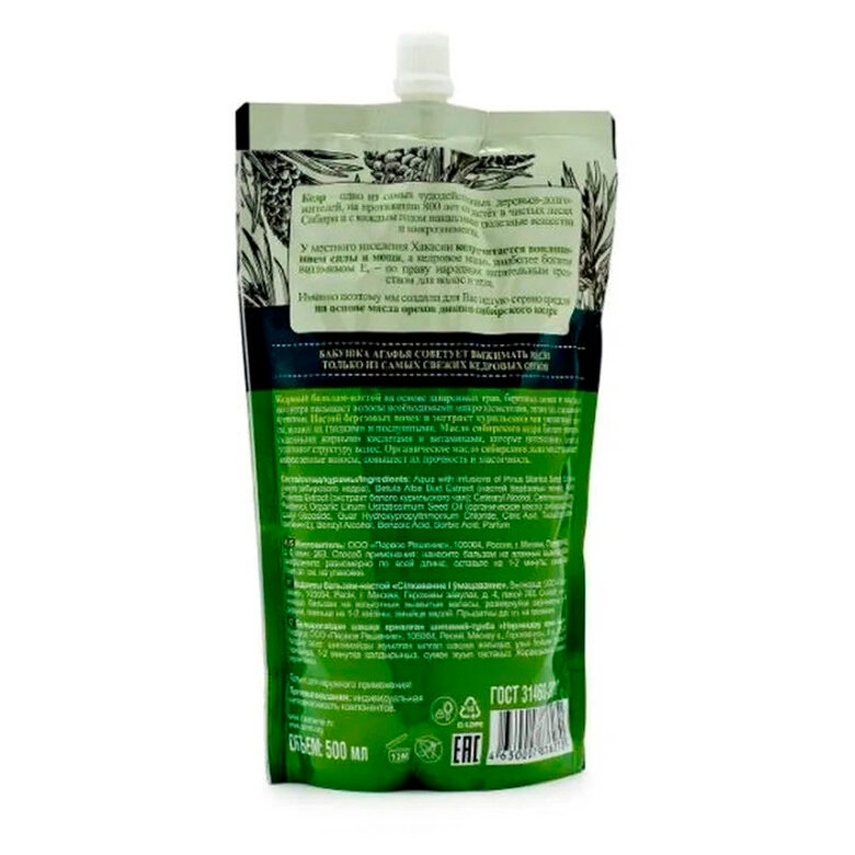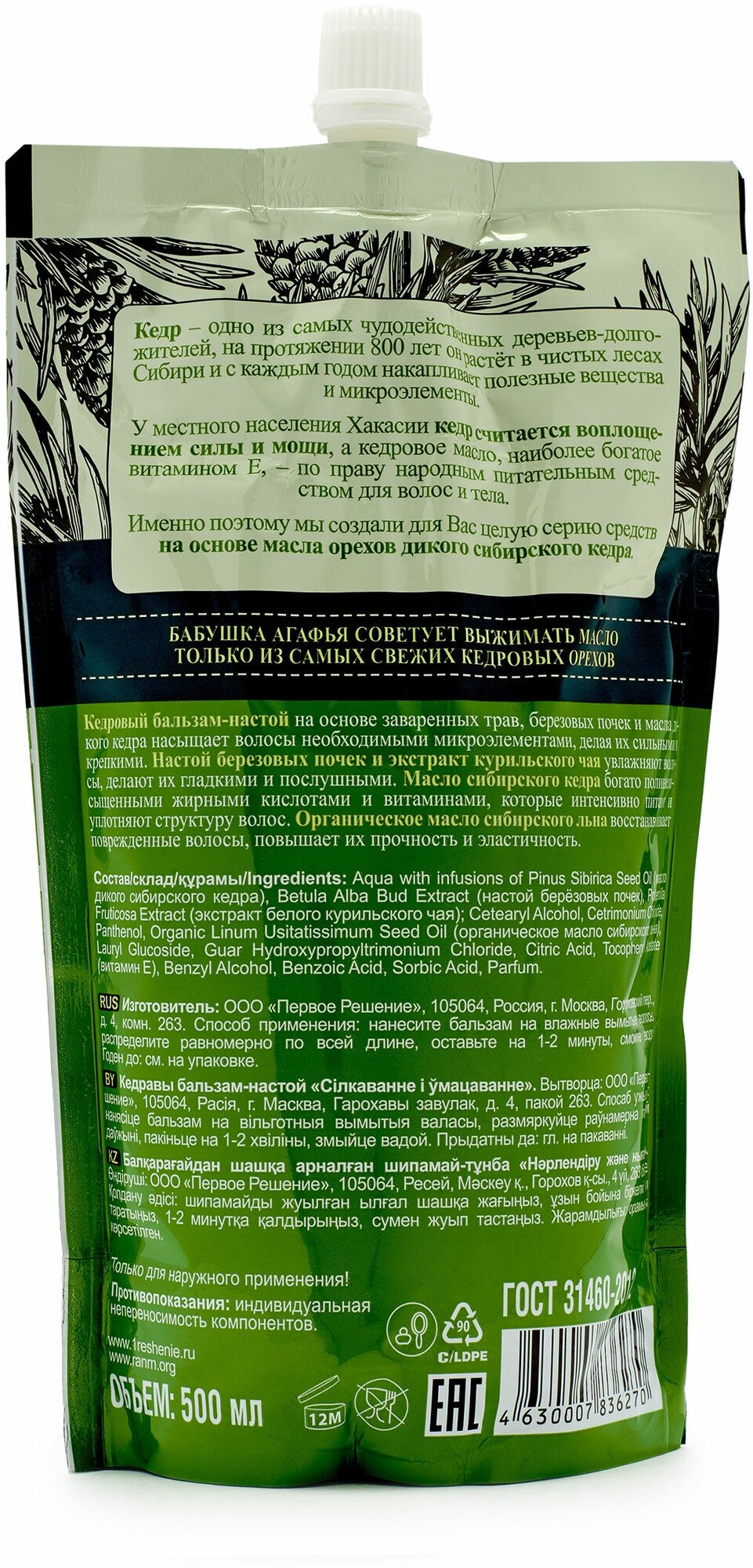 Бальзам для волос Рецепты Бабушки Агафьи Питание и укрепление кедровый 500 мл Настой кедровый Питание и укрепление