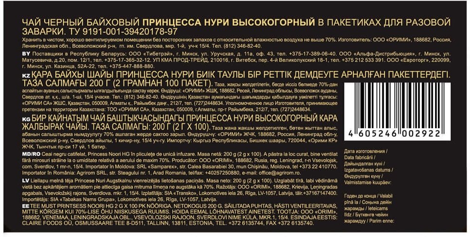 Чай черный Принцесса Нури Высокогорный в пакетиках 25 шт