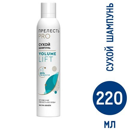 Средство для освежения прически и экспресс-очищения волос - сухой шампунь Прелесть Professional Volume Lift, его можно использовать как для ежедневного стайлинга для придания объема и удаления жирного блеска с волос и кожи головы. Освежает и моделирует прическу, делает волосы более мягкими, обладает легким антистатическим эффектом. Он незаменим в случаях, когда нет возможности помыть голову, используя шампунь и бальзам для волос, нужно срочно освежить волосы утром перед работой, вечером перед важным мероприятием или на следующий день после мытья волос. Сухой шампунь обладает приятным ароматом, он хорошо распыляется и полностью вычесывается, не оставляя белых следов на волосах и одежде. Для нанесения достаточно 5 минут и расчески с частыми зубцами. После его использования волосы становятся объемными и не требуют дополнительного мытья головы. Способ применения: тщательно встряхните сухой шампунь и распылите на сухие локоны с расстояния 20-30 см, уделяя особое внимание корням волос. Подождите 30-60 сек, затем массирующими движениями распределите шампунь сухой по волосам. Тщательно расчешите волосы расческой.