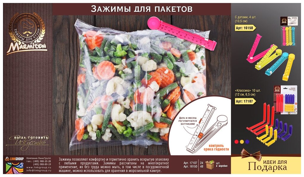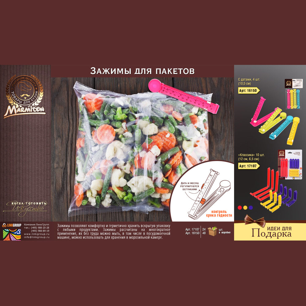 Сервис сравнения цен СкидкаГИД предлагает сравнить цены на товар «Набор зажимов для пакетов Marmiton с датами 4 шт 105 см»