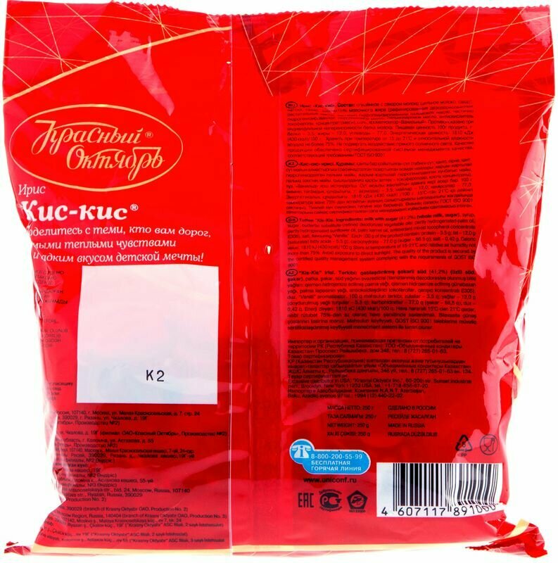 Молочный ирис Кис-Кис от фабрики Красный октябрь. Знаменитые ириски с нежным сливочным вкусом и яркими карамельными оттенками. Традиционный ирис, любимый с детства сладости!