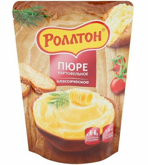 Роллтон предлагает своим потребителям картофельное пюре в обновленной упаковке. Современная упаковка позволит продукту не впитывать посторонние запахи и не займет много места на полке, а большой формат поможет быстро приготовить гарнир для всей семьи. При производстве используются только отборные хлопья из натурального картофеля, что гарантирует качественный и неизменный продукт.