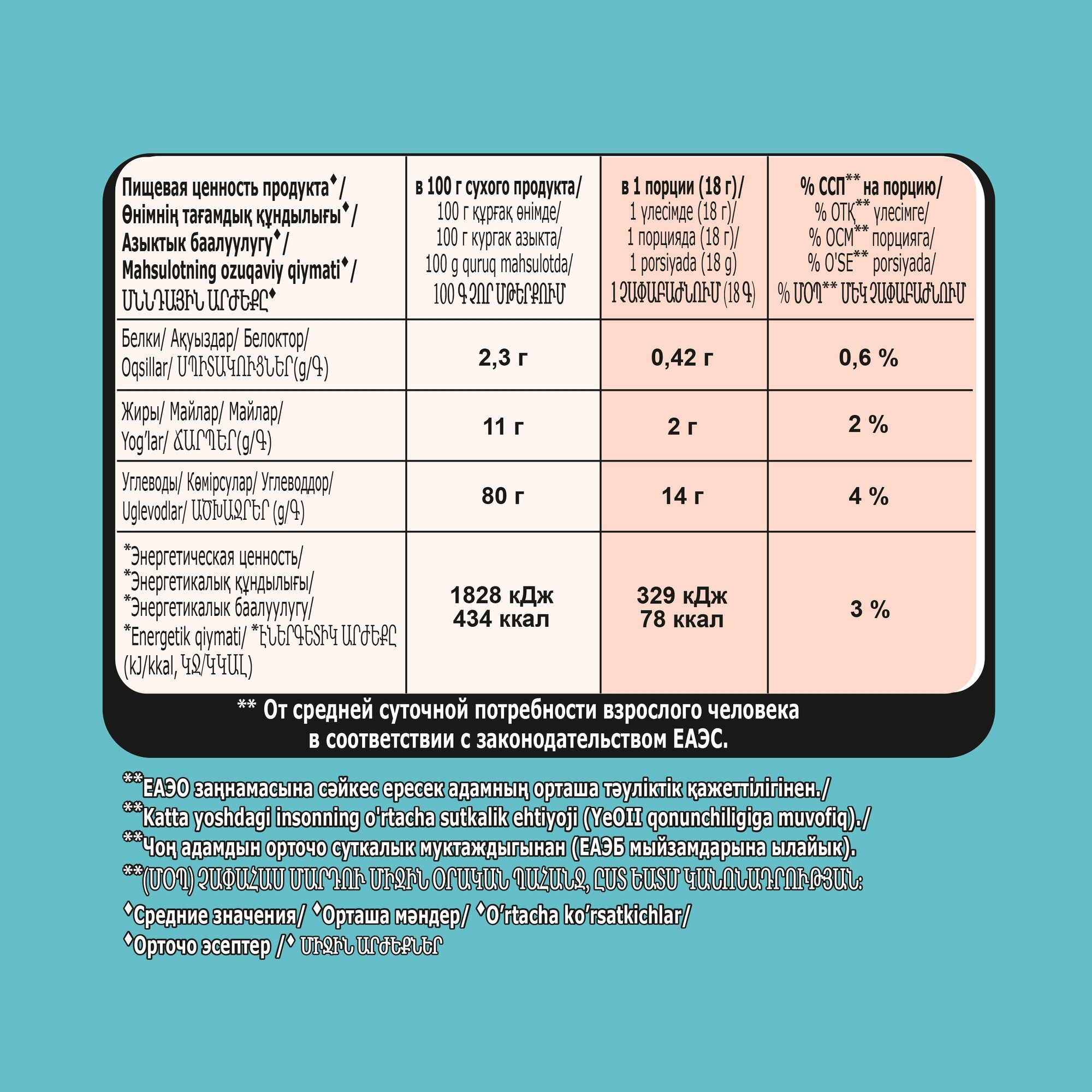 | Энергетическая ценность (ккал на 100 г) | 428 |