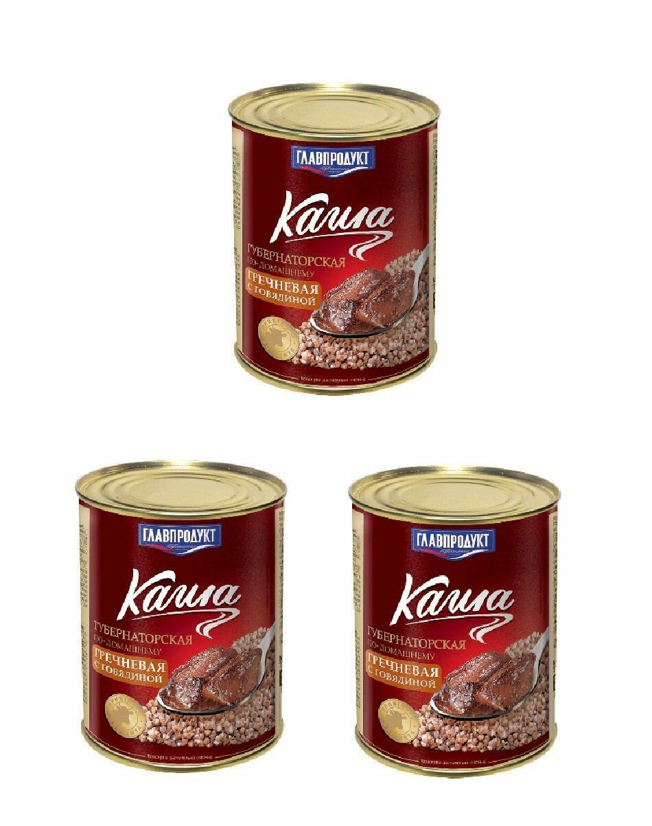 Каша ГЛАВПРОДУКТ Губернаторская по-домашнему гречневая с говядиной 340г. Консервы растительно - мясные, стерилизованные. Перед употреблением разогреть.
