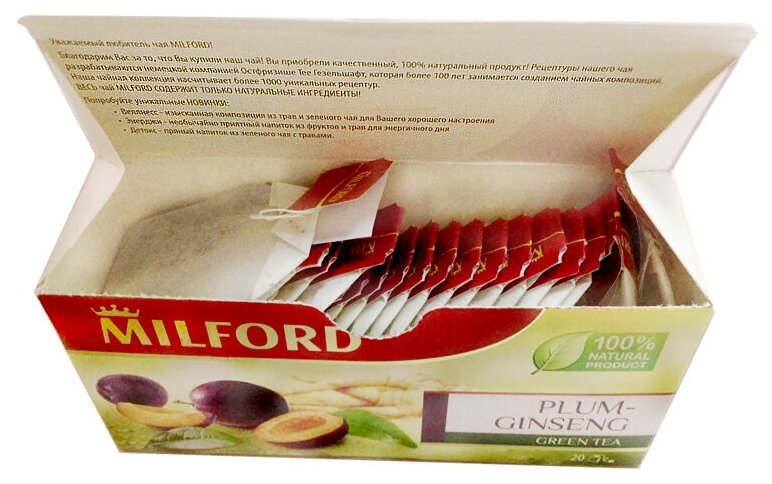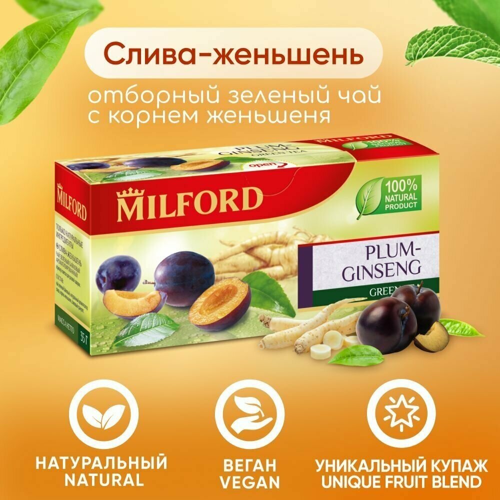 Чай зеленый MILFORD Слива-Женьшень в пакетиках 20х1.75 г