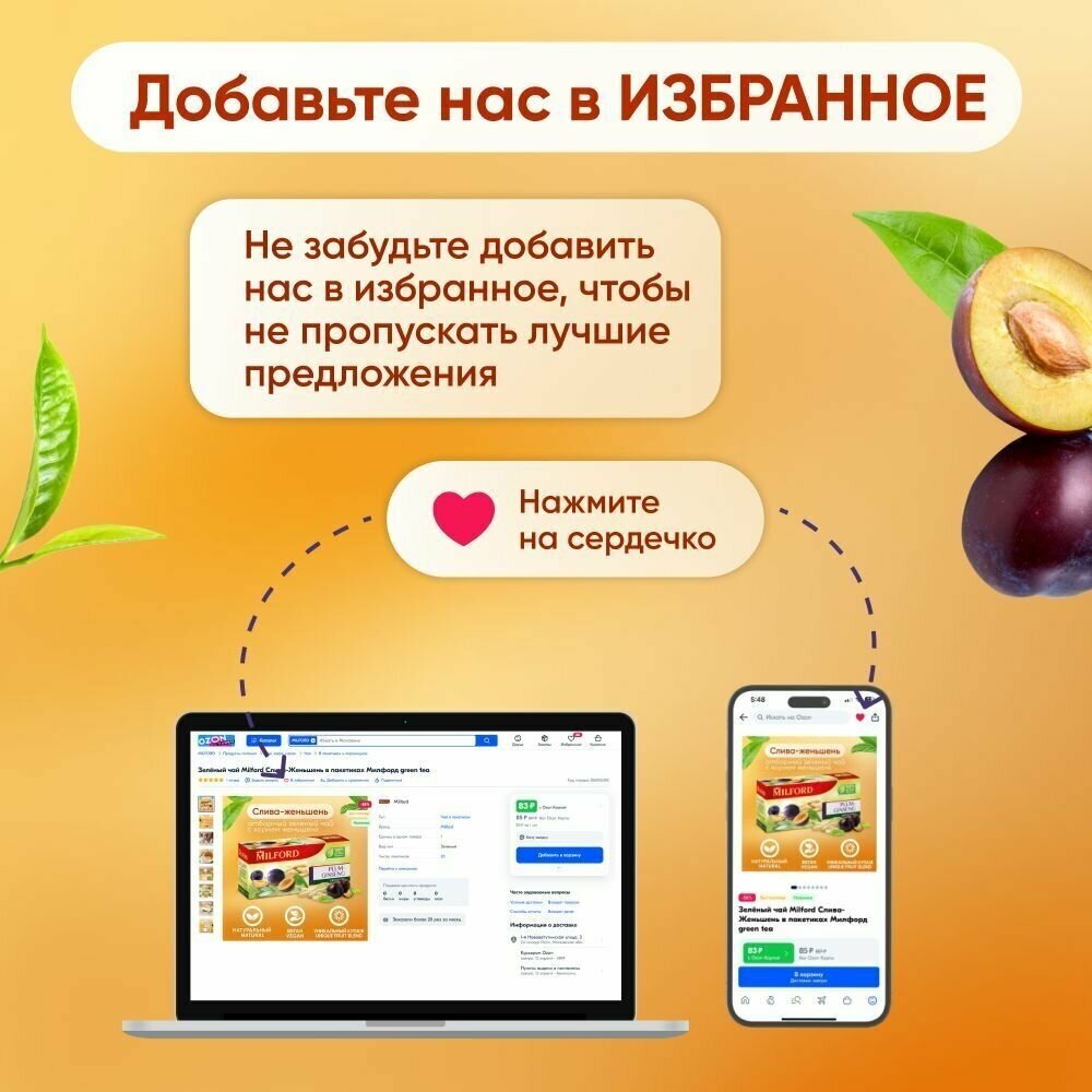 Сервис сравнения цен СкидкаГИД предлагает сравнить цены на товар «Чай зеленый MILFORD Слива-Женьшень в пакетиках 20х1.75 г»