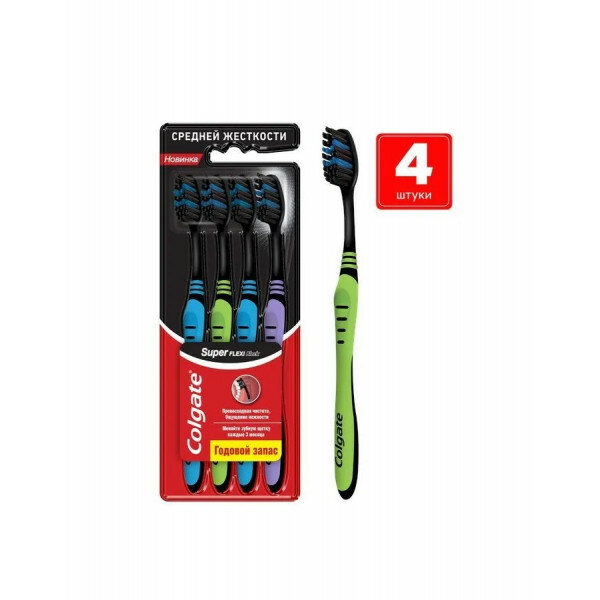 Сервис сравнения цен СкидкаГИД предлагает сравнить цены на товар «Зубная щетка Colgate Super Flexi Black с гибкой ручкой средней жесткости 4 шт»