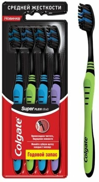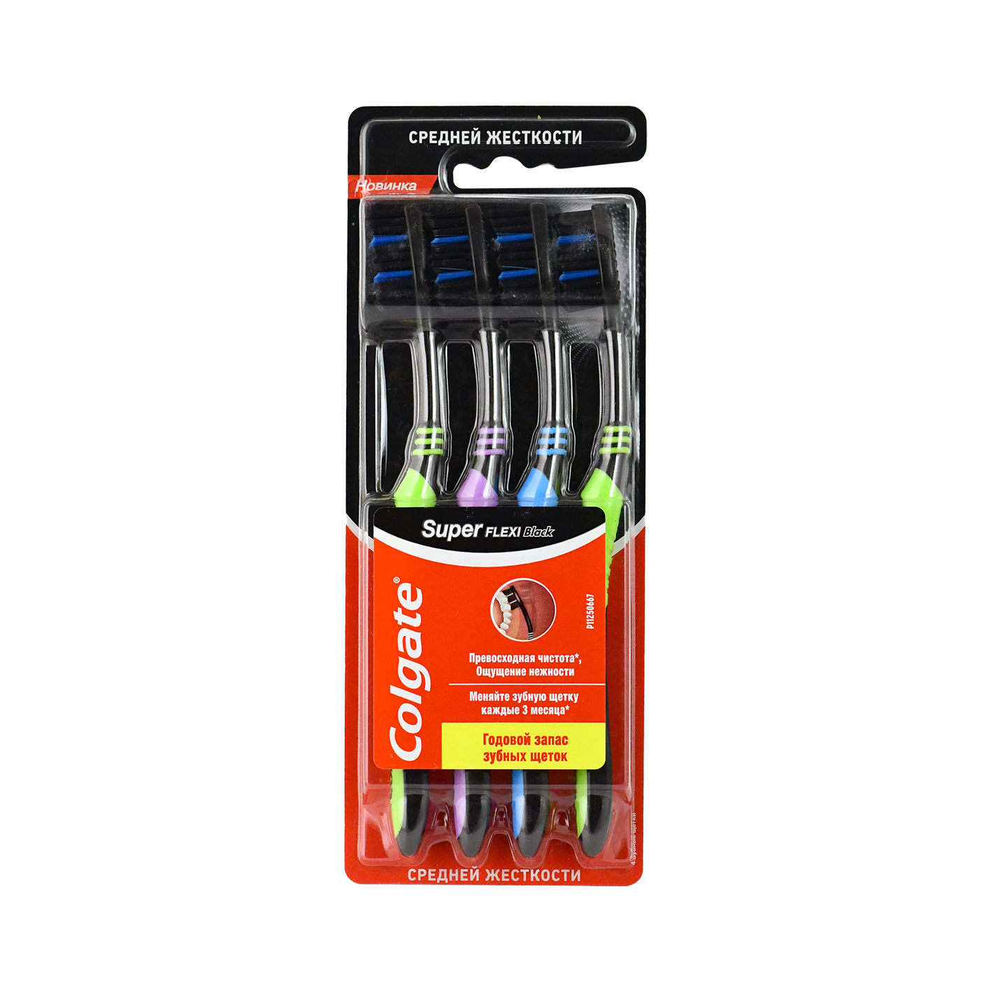 Зубная щетка Colgate Super Flexi Black с гибкой ручкой средней жесткости 4 шт