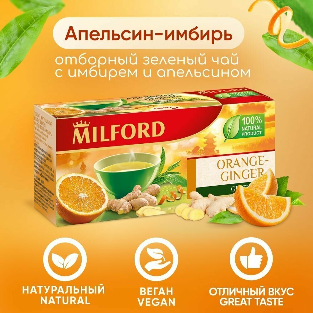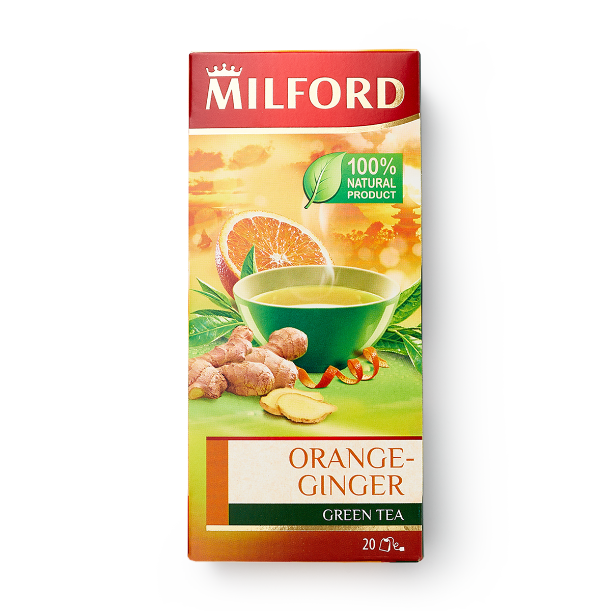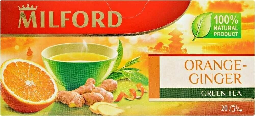 Чай зеленый MILFORD с апельсином и имбирем в пакетиках 20х14 г