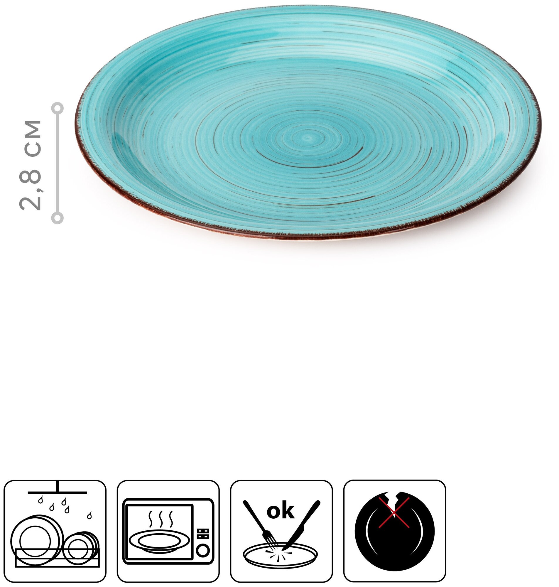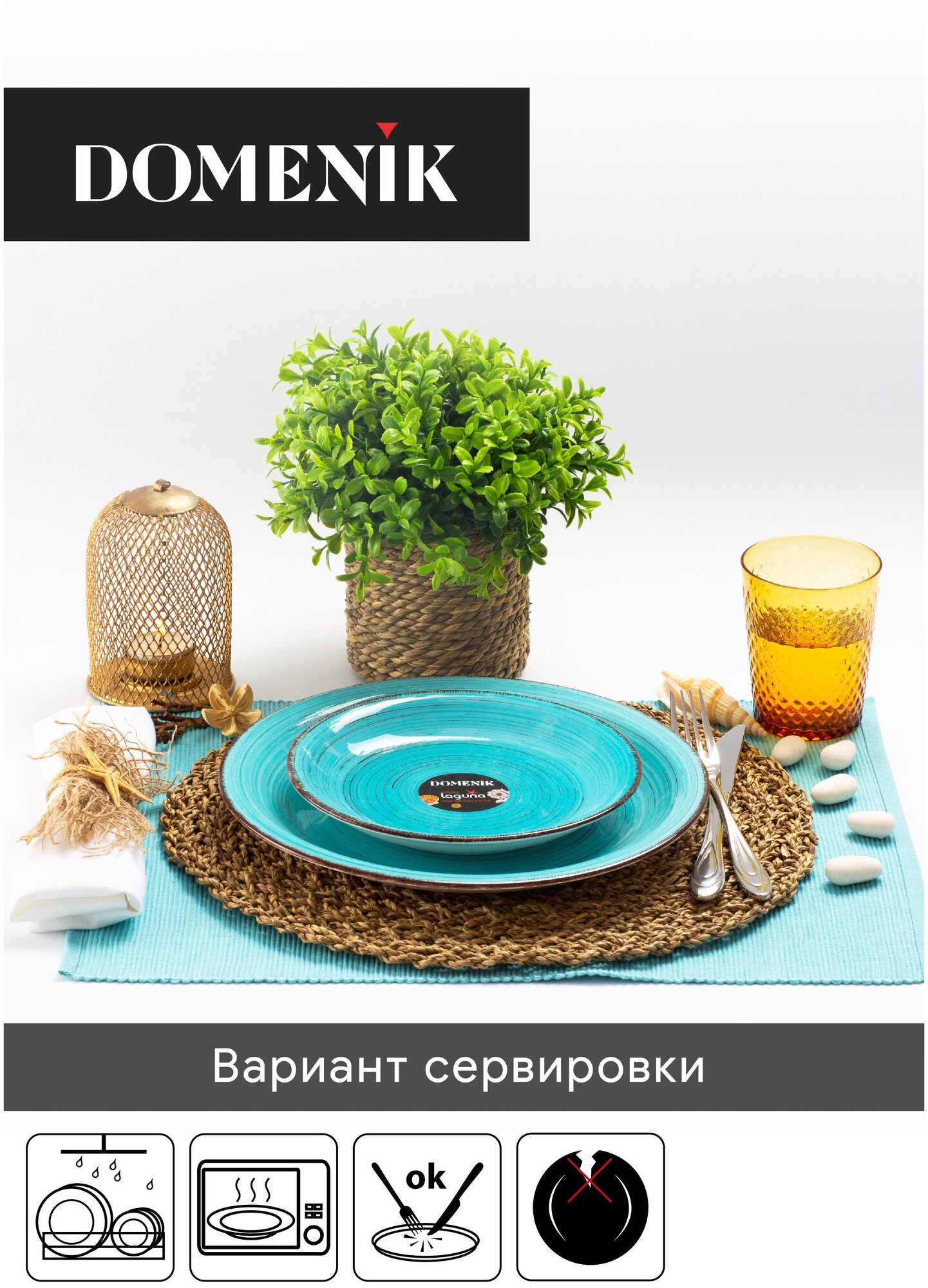 Яркая тарелка 'DOMENIK' украсит любой стол, прекрасно впишется в интерьер Тарелка выполнена из качественной керамики. В керамической посуде блюда сохраняют свои вкусовые качества, кроме того она обладает термической и химической прочностью. Благодаря оригинальному дизайну, такие тарелки отлично подойдут как для ежедневного использования, так и для праздничной сервировки стола. Можно мыть в посудомоечной машине. Можно использовать в микроволновке.