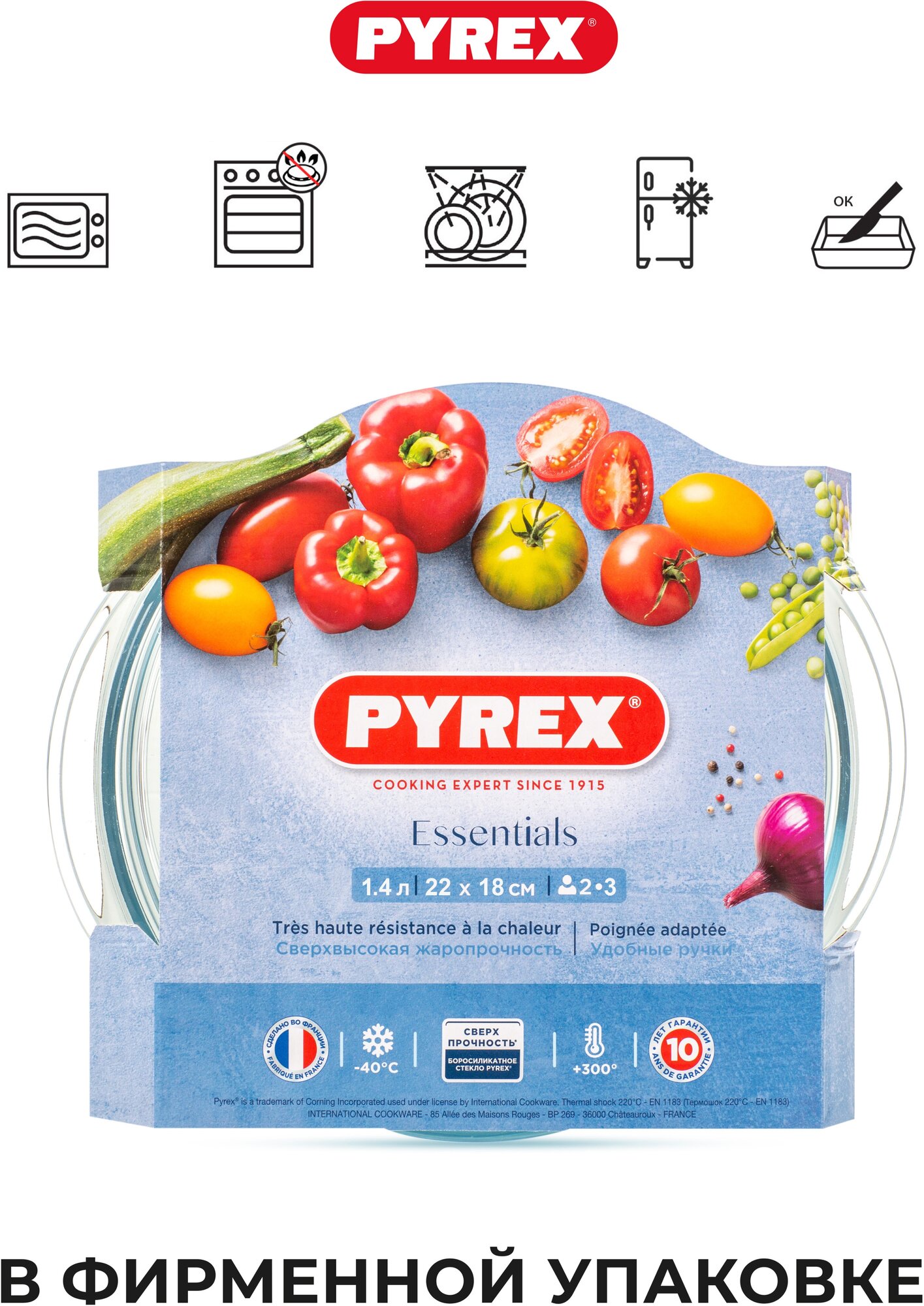 Стеклянная кастрюля Pyrex ESSENTIALS 1,4 л— это практичный вариант жаропрочной посуды. Набор посуды включает в себя кастрюлю с ручками объемом 1 л и крышку объемом 0,4 л. Боросиликатное стекло Pyrex выдерживает резкие перепады температуры — форма подходит для запекания, охлаждения, приготовления в СВЧ-печи и хранения. В прозрачной кастрюле легко отследить все процессы приготовления. Посуда подходит для блюд из мяса, рыбы и овощей — пища получается с корочкой и не пригорает. Стеклянная крышка удерживает пар, сохраняя аромат блюда. Крышка оснащена ручками — емкость подойдет в качестве тарелки и формы для запекания. Плотная структура стенок делает кастрюлю с крышкой прочной и долговечной, на посуде не остается следов пищи и запахов. Кастрюля с прозрачной крышкой станет отличным подарком для любой хозяйки. Посуда не предназначен для использования на газовых плитах!