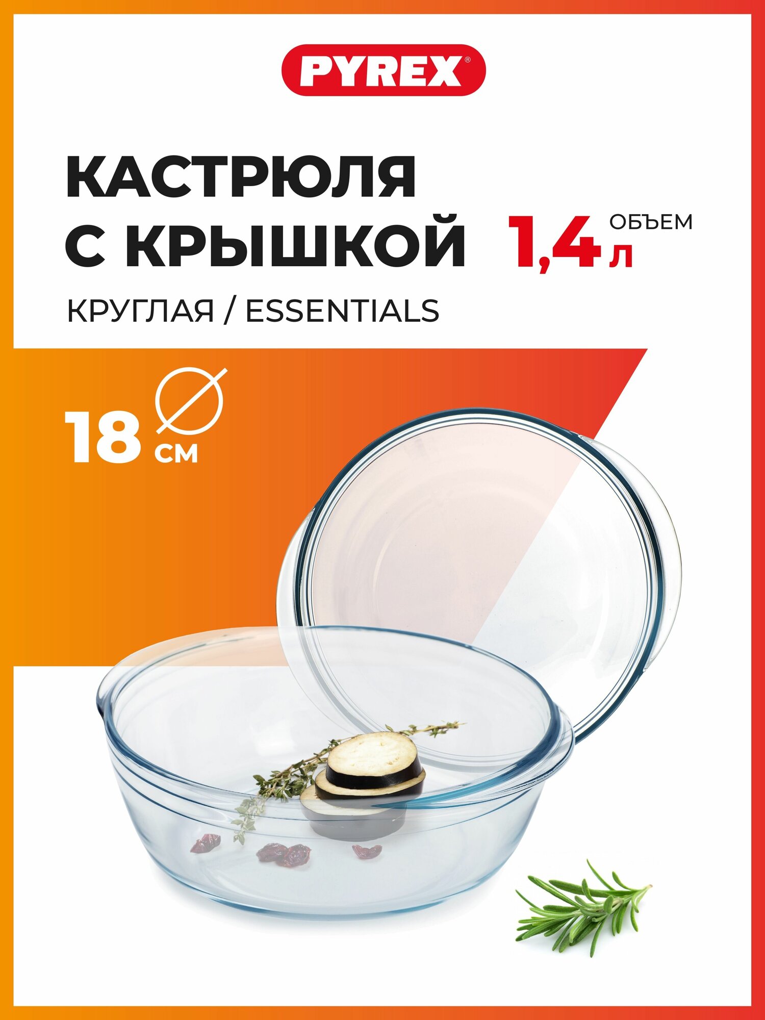 Кастрюля ESSENTIALS 1.4л 18см круглая с крышкой PYREX 207A000N/2022