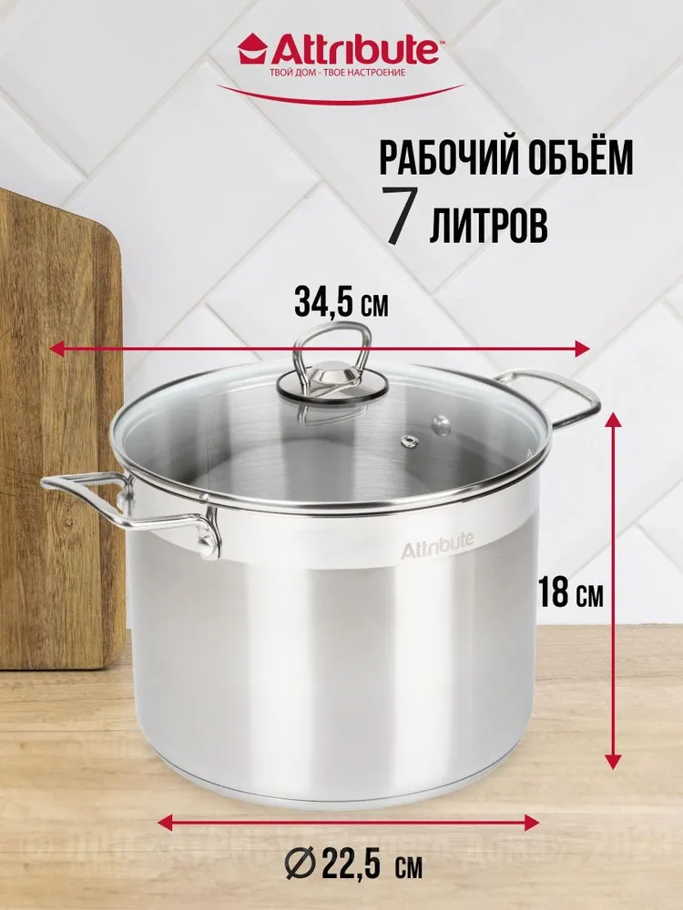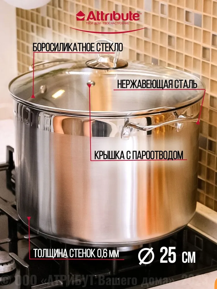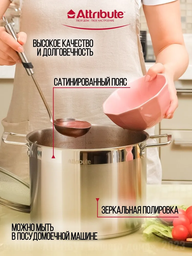 Кастрюля с крышкой MASTER CHEF 12л ATTRIBUTE STEEL ASM012
