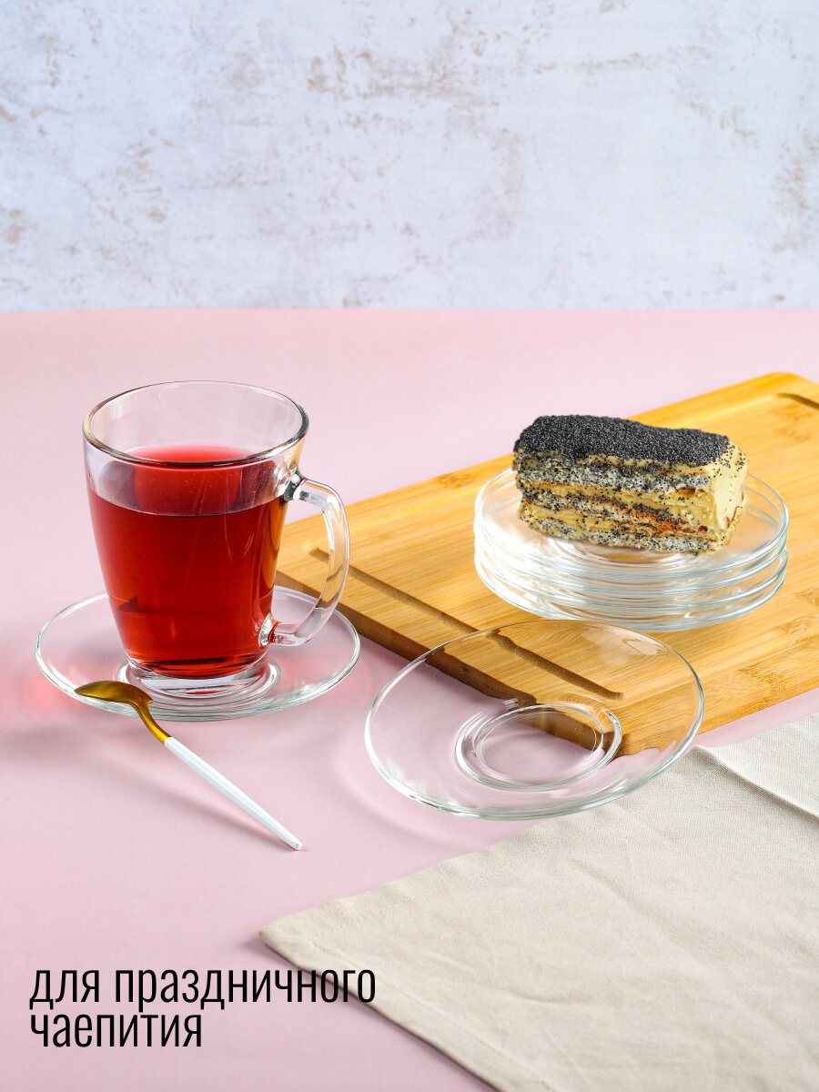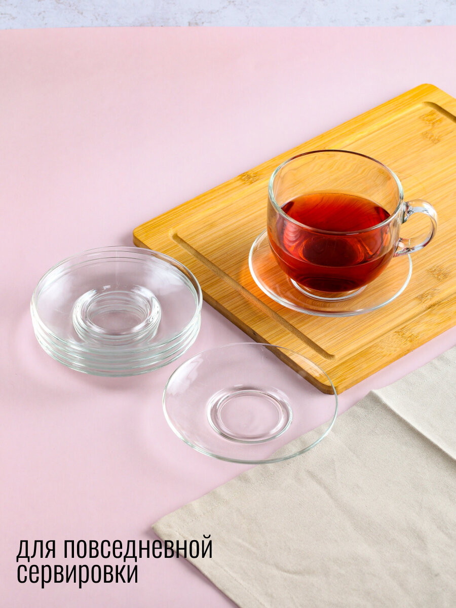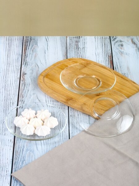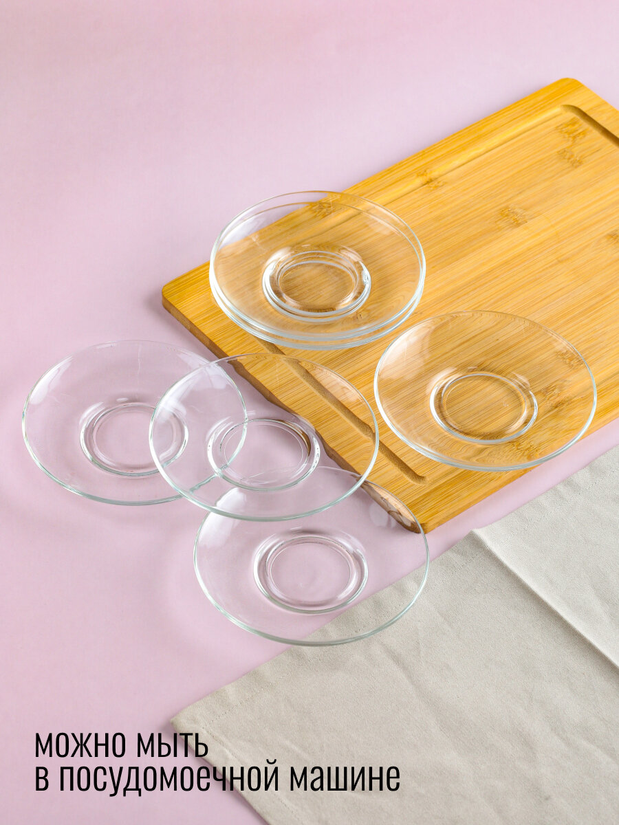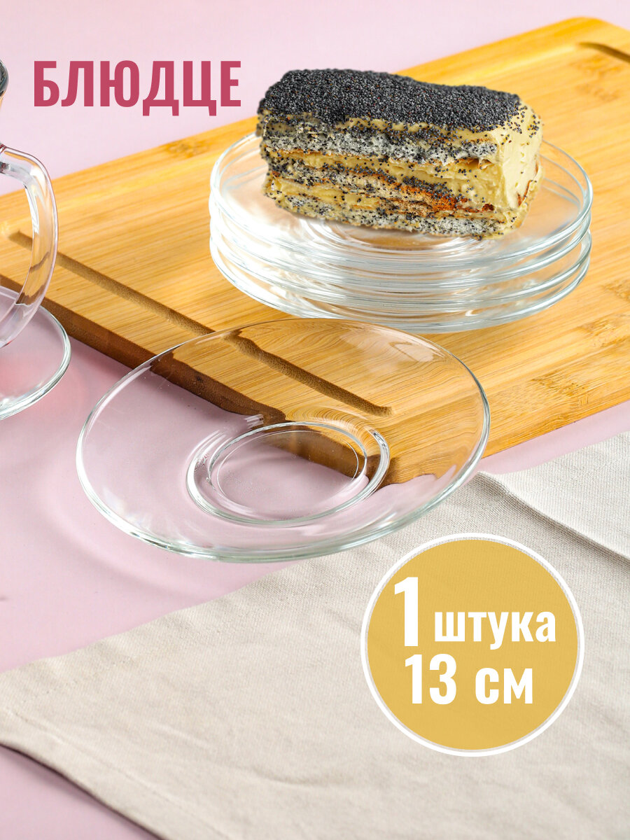 Оно наверняка понравится любителям прозрачной посуды, такой стильной и в то же время универсальной, подходящей к любой сервировке стола. Материалом изготовления послужило толстое стекло, отличающееся устойчивостью к механическим повреждениям и эффектным внешним видом. Идеально гладкая поверхность блюдца легко отмоется от загрязнений вручную или в посудомоечной машине.