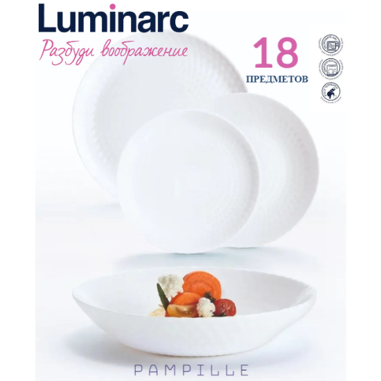 Набор столовый PAMPILLE WHITE 18 предметов LUMINARC Q6153
