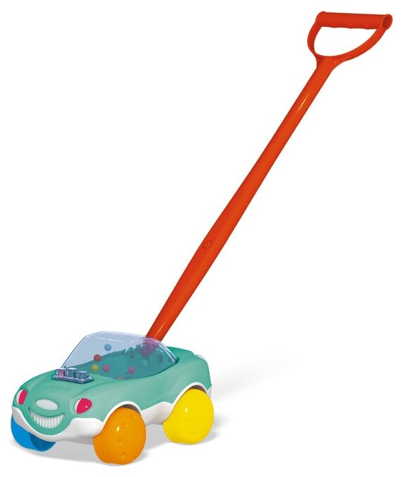 Каталка «Машинка» будет особенно интересна тем, что все малыши от природы исследователи и их привлекают всевозможные технические средства. Им нравится катать машинку и наблюдать как во время движения в ее кабине прыгают и шуршат шарики. Во время этой незамысловатой игры совершенствуются движения малыша, ребенок учится рассчитывать свои силы при взаимодействии с другим предметом, закладывается основы для игровой деятельности.