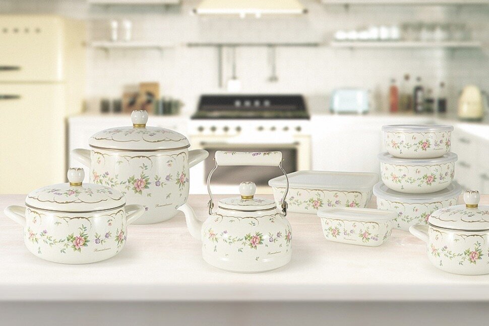 Посуда производится из углеродистой стали с последующим нанесением на штампованную стальную форму специального эмалевого покрытия и обжигается при температуре 800-850 С.