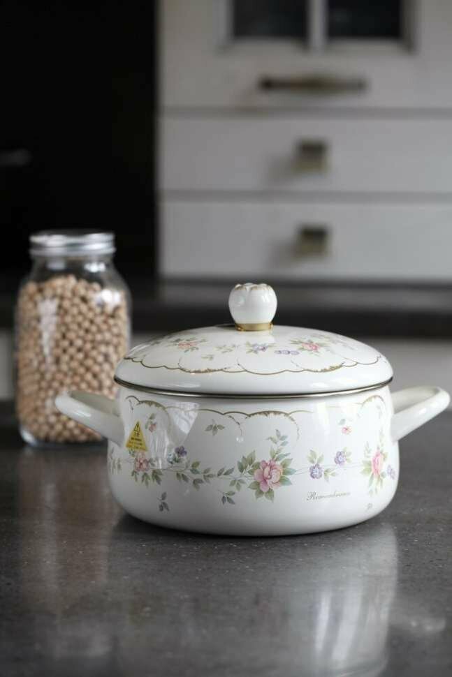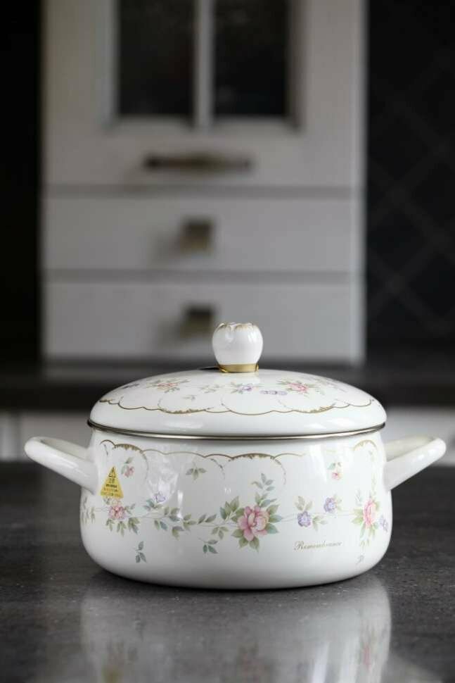Кастрюля с крышкой эмалированная 19л Ejiry Воспоминание (EJ-REM-18W)