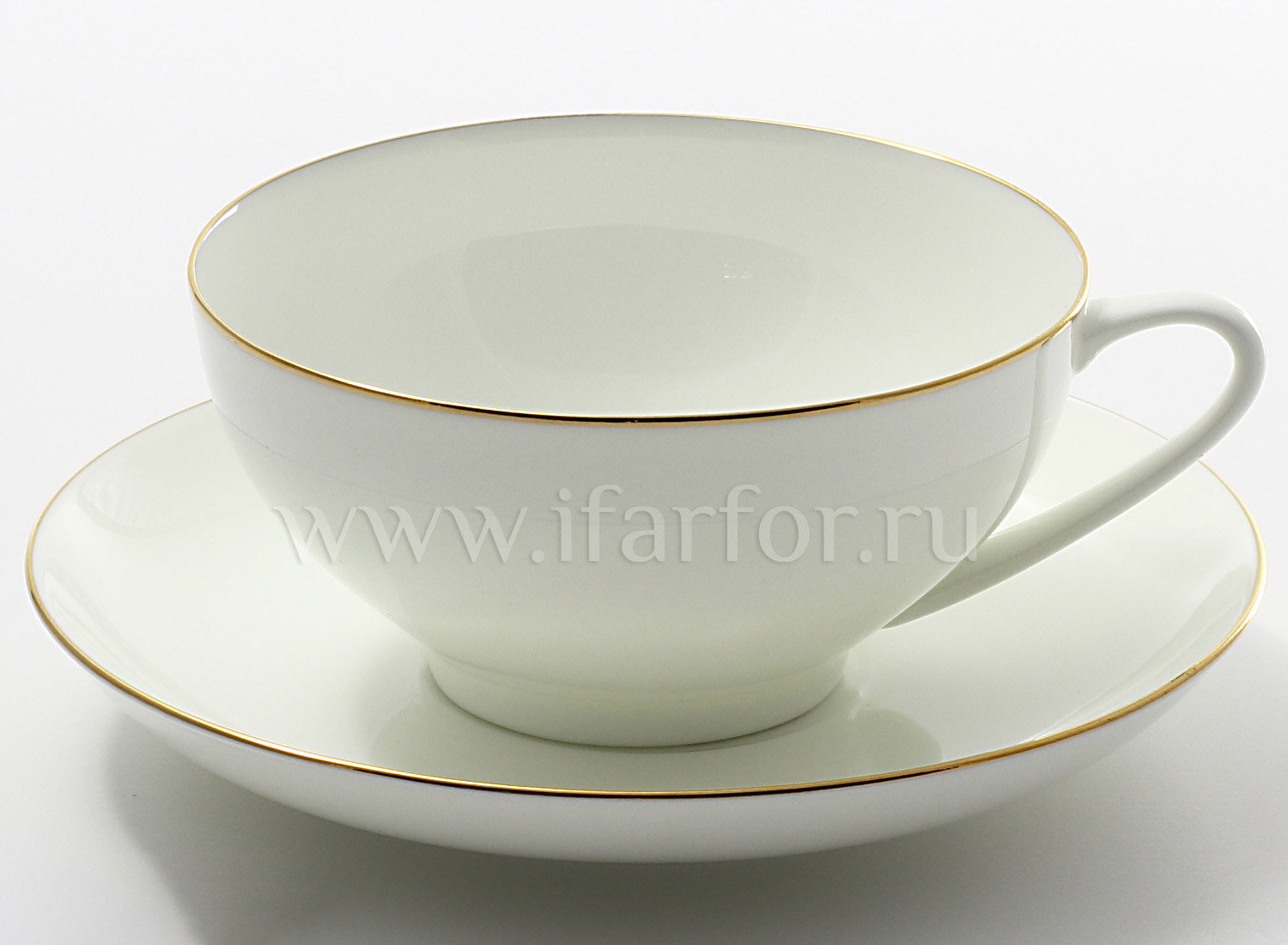 Чашка с блюдцем ИФЗ форма купольная рисунок золотая лента Императорский фарфоровый завод (81.16430.00.1)