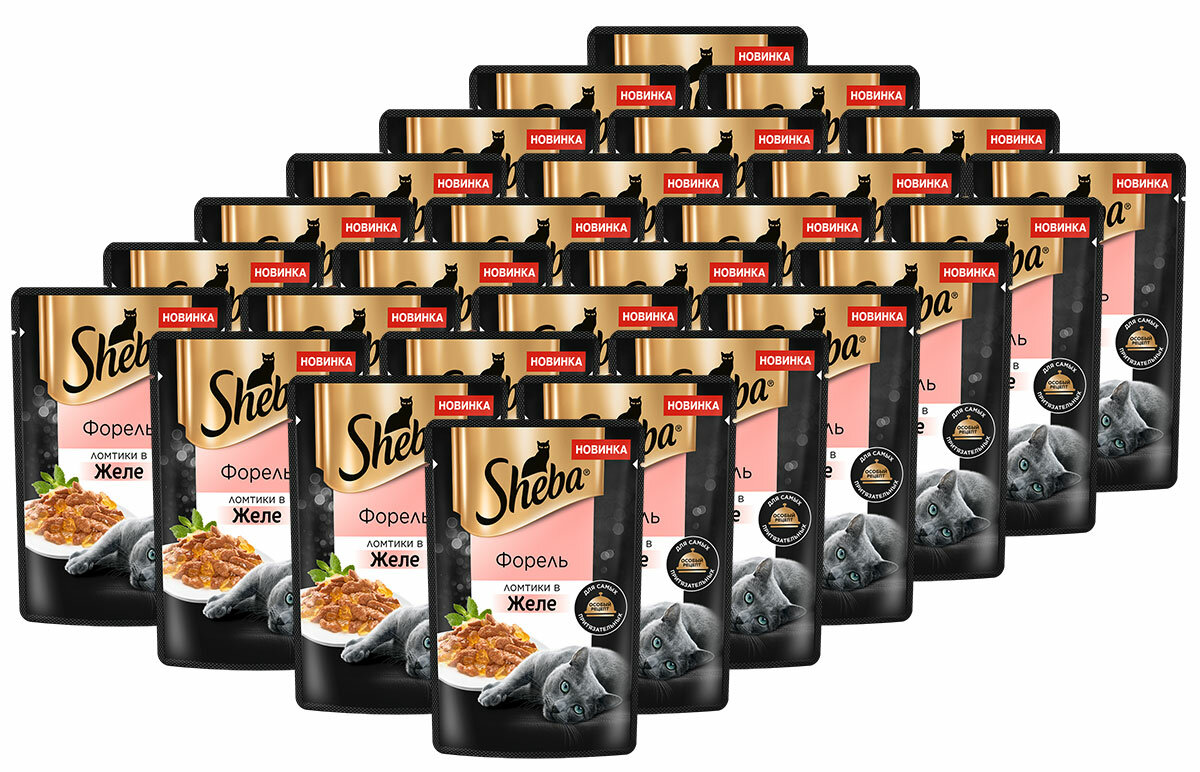 Сервис сравнения цен СкидкаГИД предлагает сравнить цены на товар «Sheba Корм влажный (пауч) для кошек форель в желе 75 гр.»