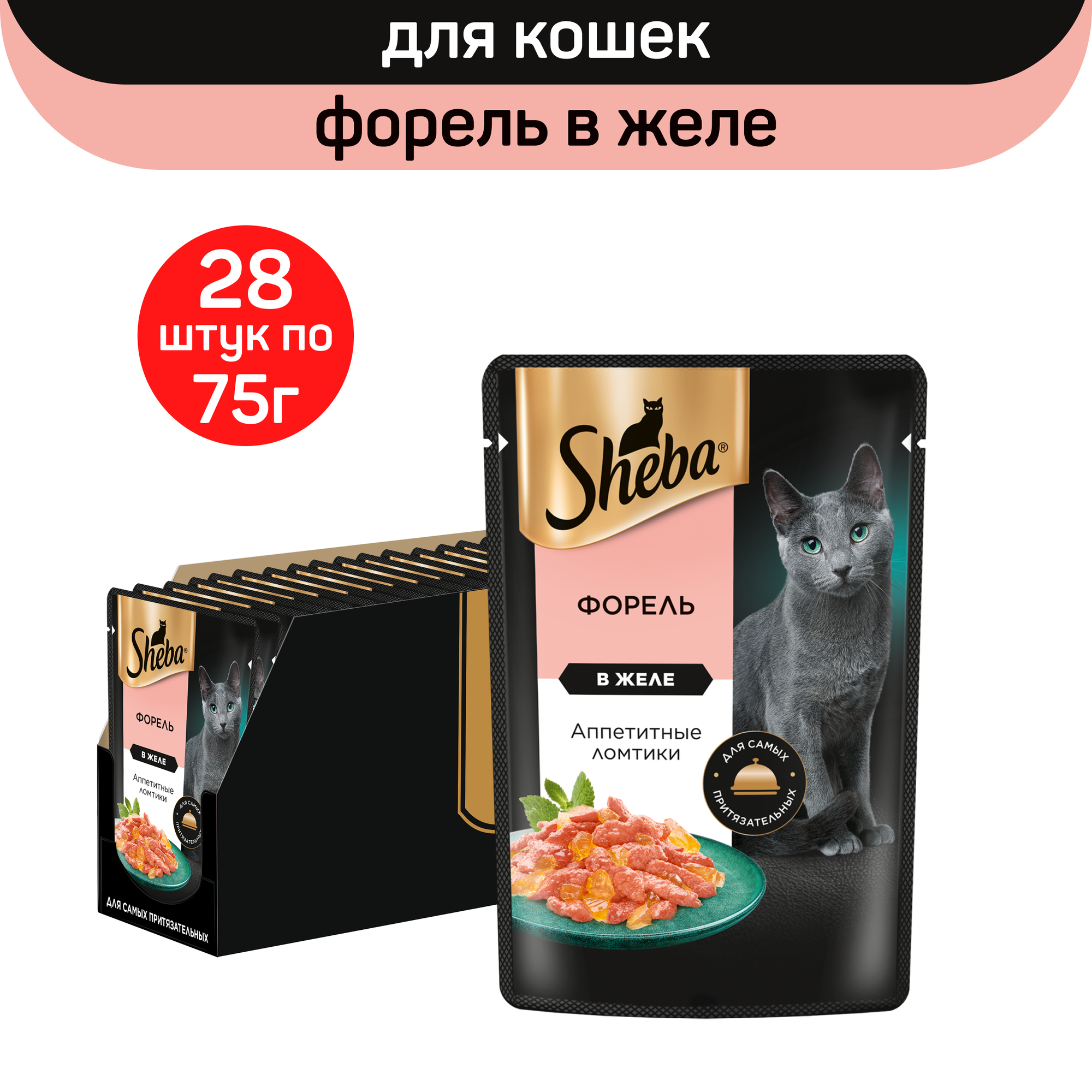 На сегодняшний день товар «Sheba Корм влажный (пауч) для кошек форель в желе 75 гр.» можно купить с кешбеком в 2 магазинах: 4lapy, Яндекс.Маркет