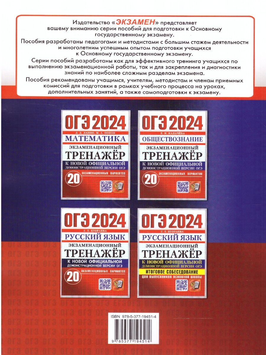 ОГЭ-2024. Русский язык. Экзаменационный тренажер. 20 экзаменационных вариантов (Егораева Галина Тимофеевна); Экзамен, 2024