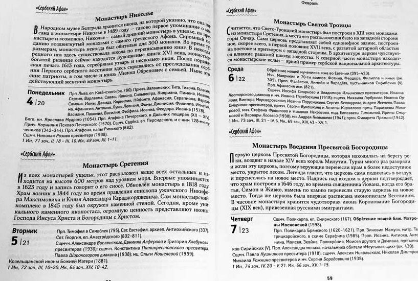 Календарь православный на 2024 г. Содержит поучения сербских святых и старцев, рассказы о чудесах, притчи, описания традиционных блюд сербской кухни.