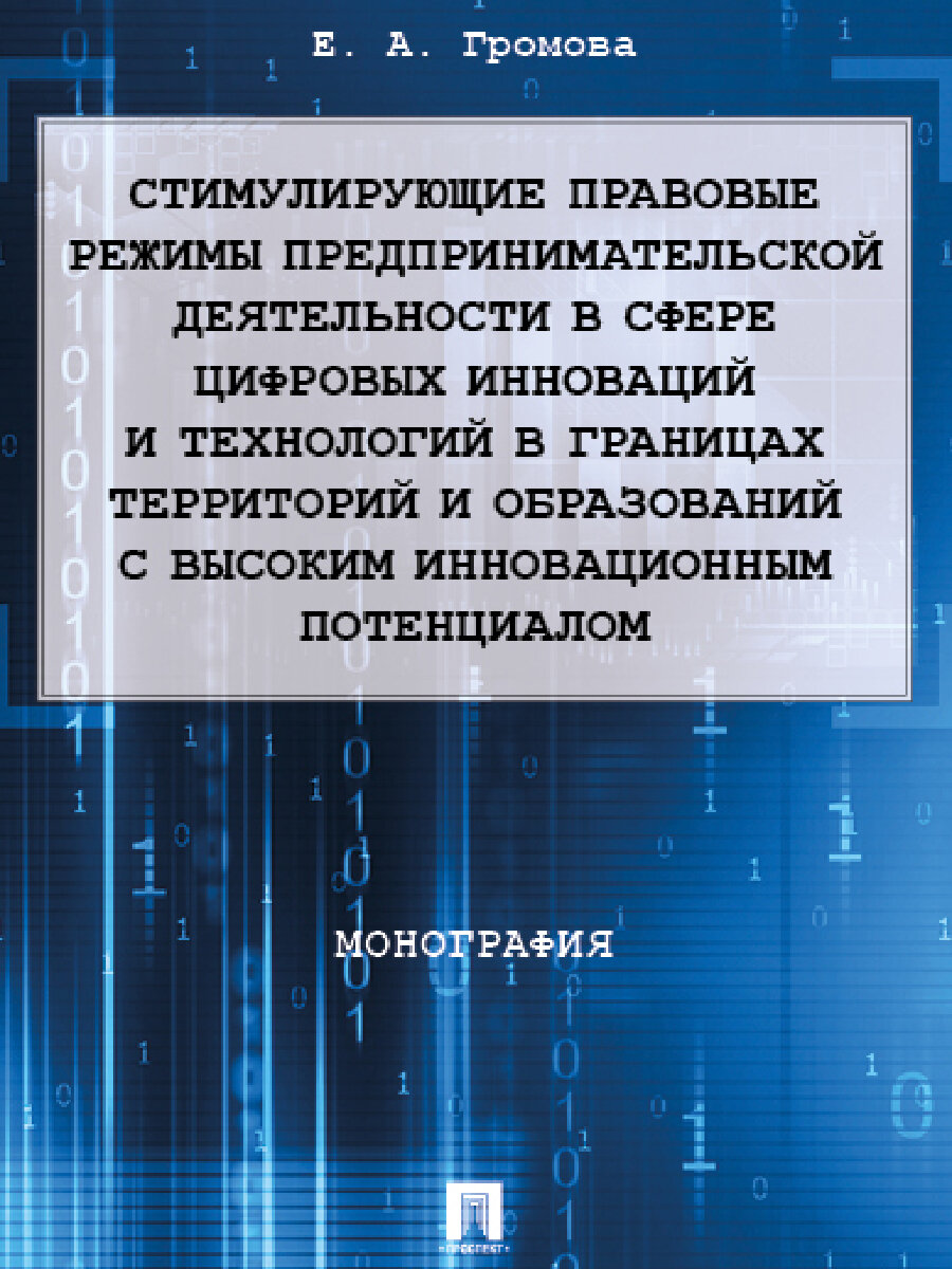 Стимулирующие правовые режимы предпринимательской деятельности в сфере цифровых инноваций и технологий в границах территорий и образований с высоким инновационным потенциалом. Монография