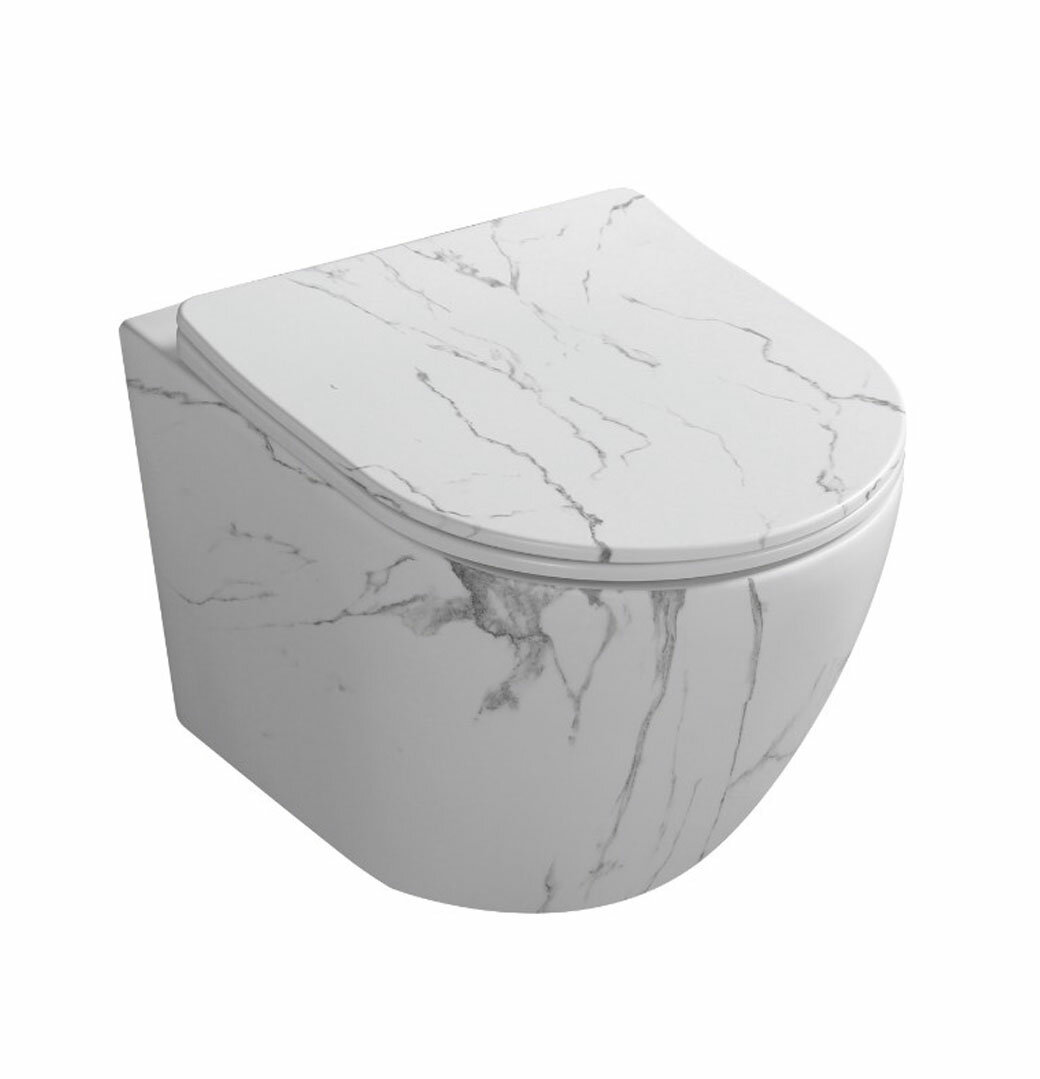 Унитаз подвесной Ceruttispa Sella aria Tornado MMW CT9530 безободковый с микролифтом белый мрамор матовый CT9532
