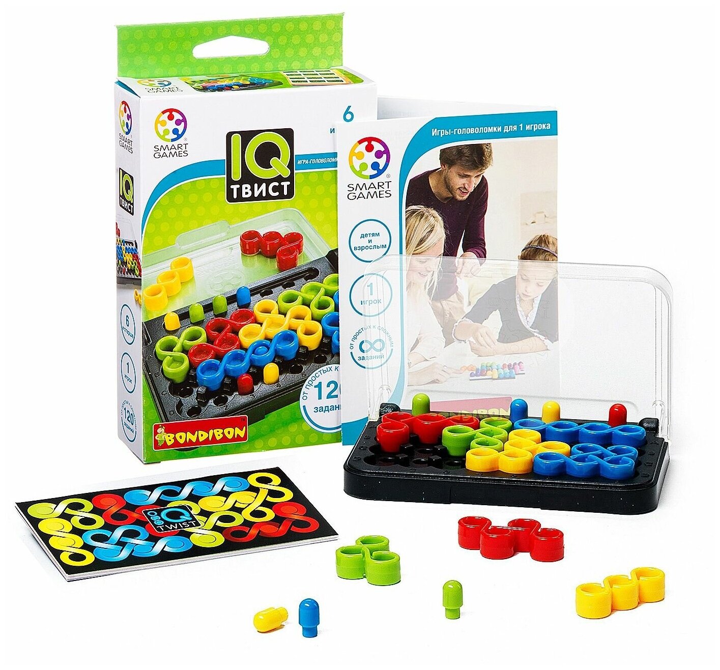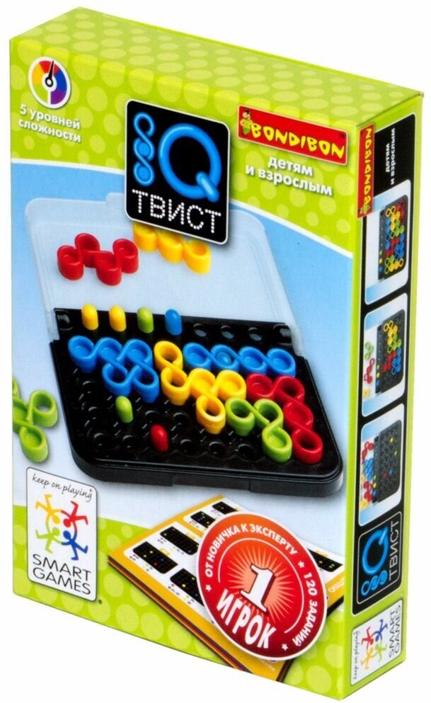 Потренируйте ум логической головоломкой IQ твист от Bondibon! Компактная игра с разными по сложности заданиями серии Smartgames надолго увлечет не только детей, но и взрослых.Выберите одну из 120 занимательных комбинаций и попробуйте выложить ее на игровом поле с помощью сплетенных деталей. Крутите элементы, как Вам захочется, но не забывайте про ориентиры. Детали должны соответствовать фишкам по цвету. Найдите единственное верное решение! Постепенно переходите к более сложным заданиям. Увлекательная игра, разработанная профессионалами, способствует развитию внимания, логического и пространственного мышления. Детали головоломки удобно хранить и брать с собой. Тренируйте мозг в путешествии, в очереди и на перемене!О качестве и безопасности позаботился Бондибон.В набор входят: игровое поле с крышкой, детали головоломки, буклет с заданиями.Возраст 6+ Количество игроков 1Соберите коллекцию развивающих логических игр серии Smartgames!