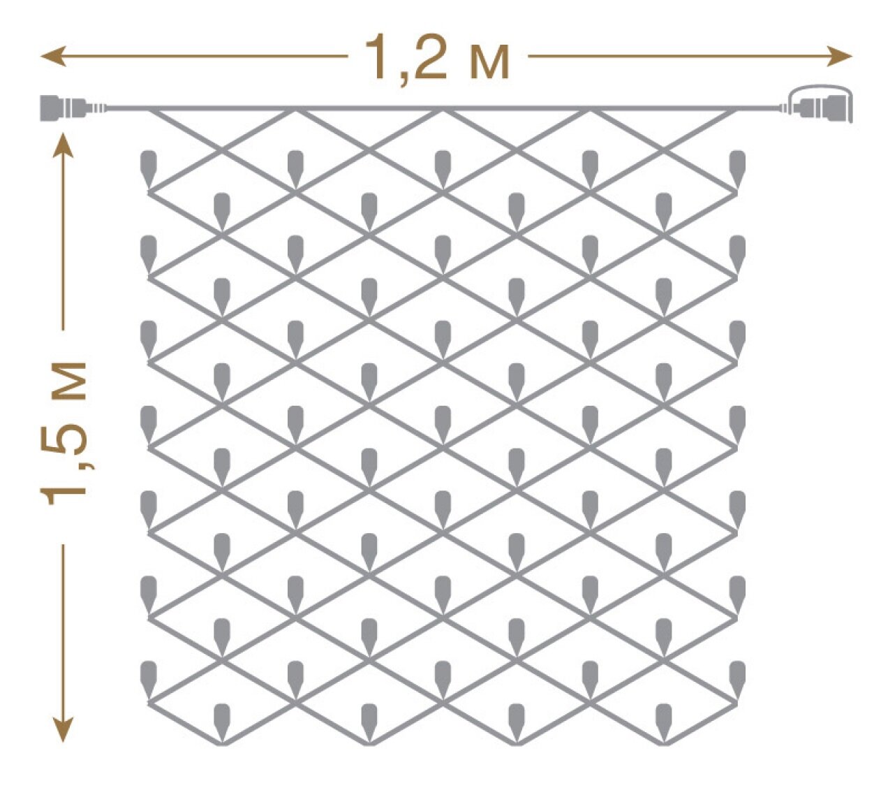 **Электрогирлянда универсальная Balance сеть 1.2х1.5м 144 ламп холодный белый свет 1 режим работы** предназначена для декорирования крупных архитектурных элементов со стороны улицы и внутри помещений. Представляет собой прозрачную сетку размером 1,2 × 1,5 м, в узлах которой расположены 144 белые LED-лампы. Гирлянда рассчитана на работу при температуре от -30 до +50 °C, имеет степень защиты IP44. Блок питания в комплект не входит.