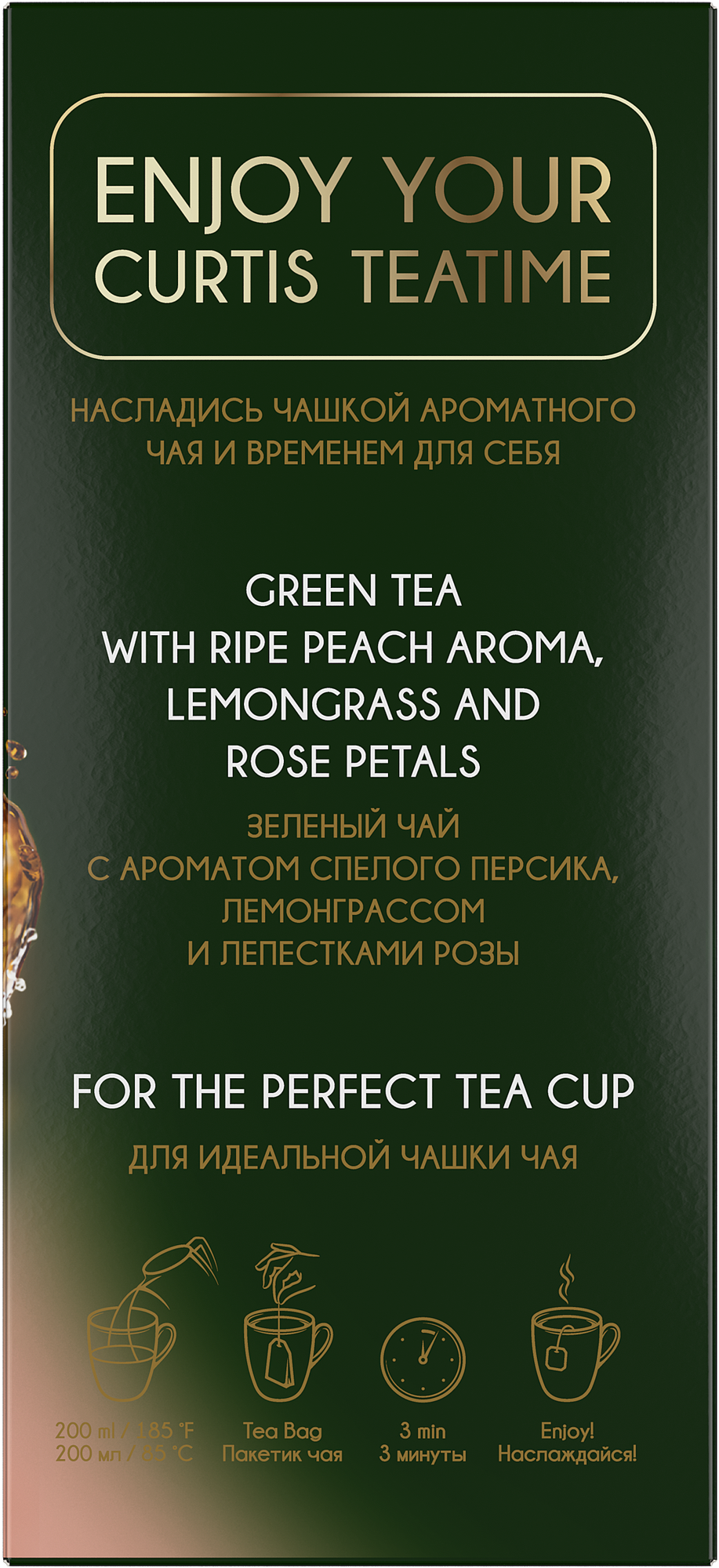 Зелёный чай в пакетиках с ароматом персика, кусочками яблока и лепестками розы. Насладись ярким вкусов для новых открытий.