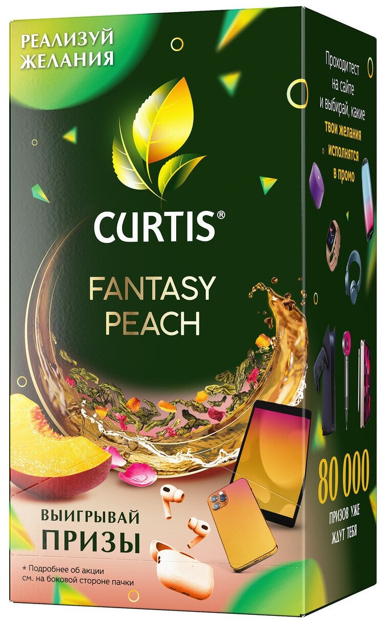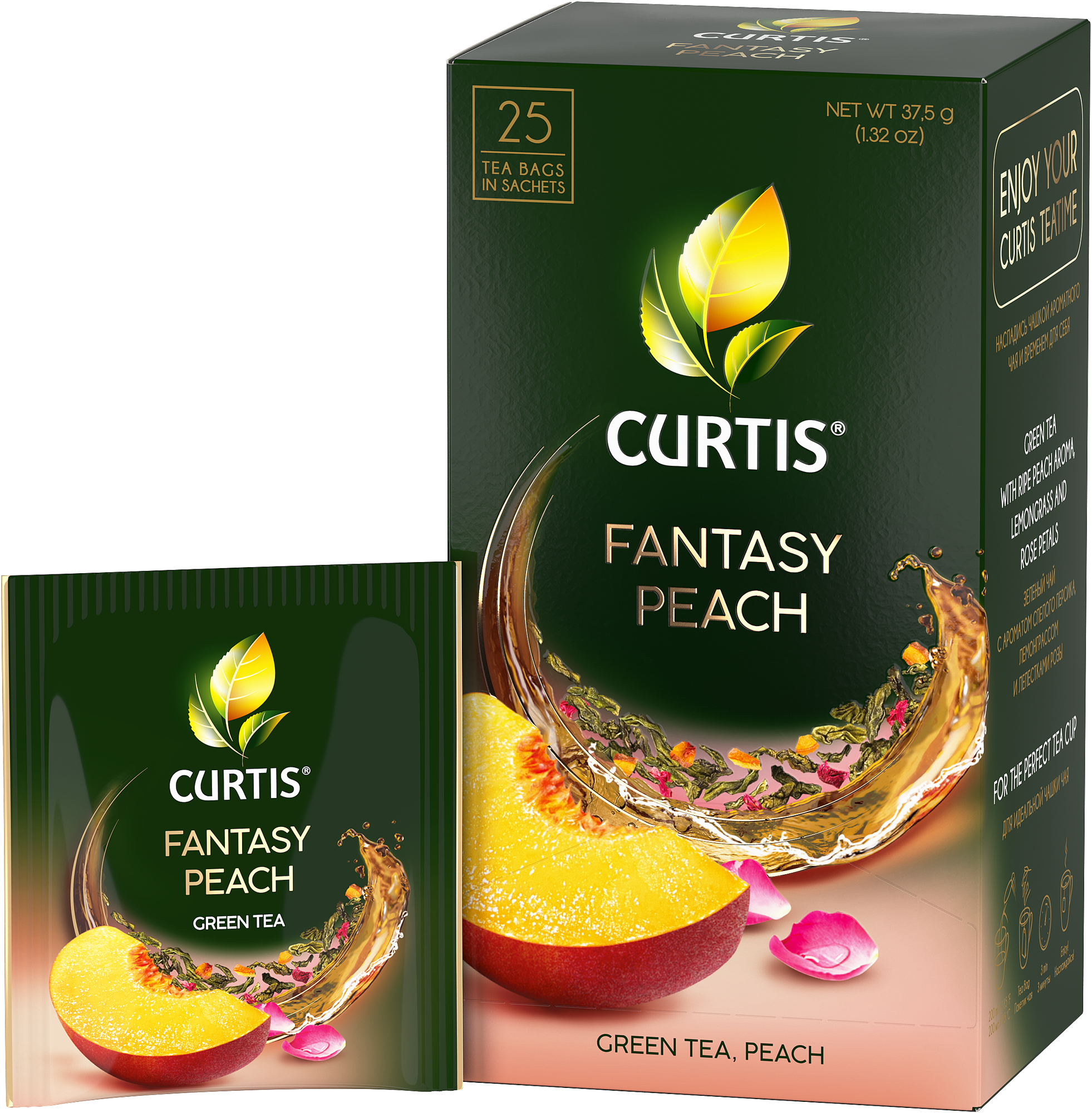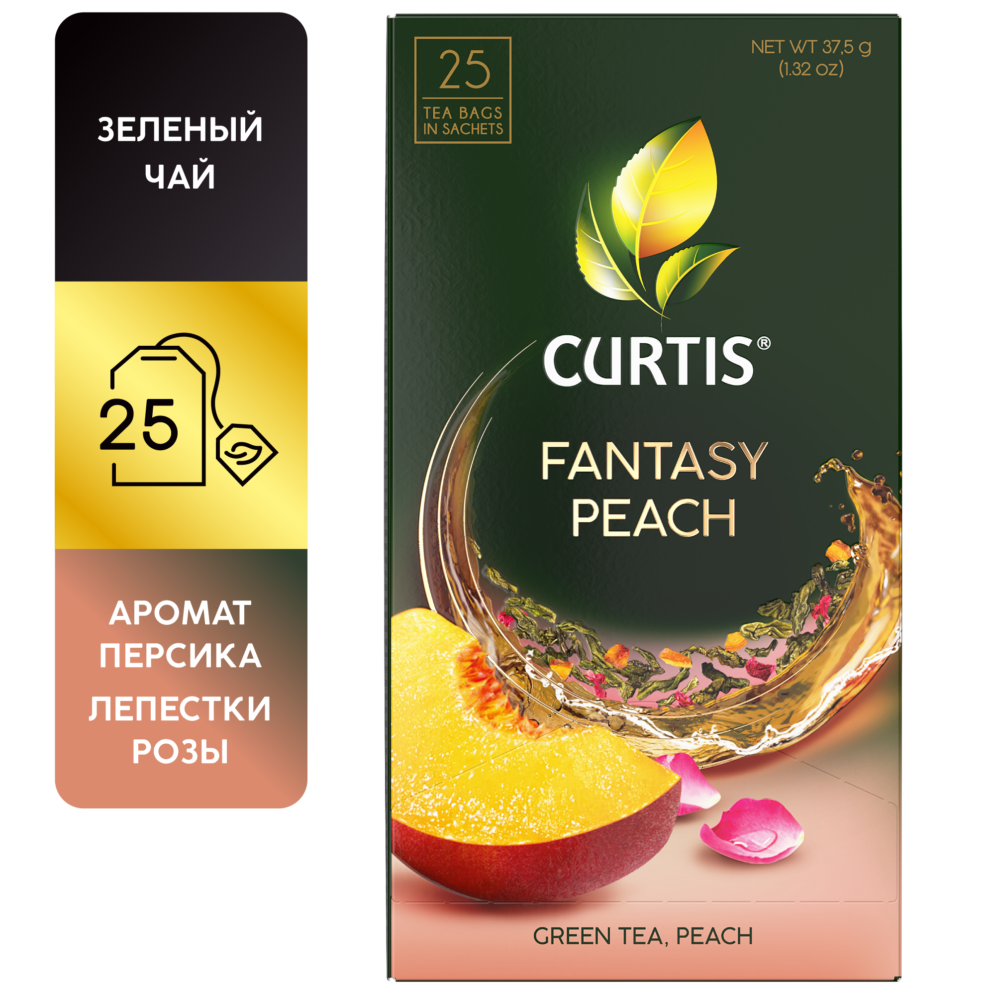 Чай Curtis Fantasy Peach зеленый c шиповником кусочками яблок и лепестками розы 25*1.5г Компания Май